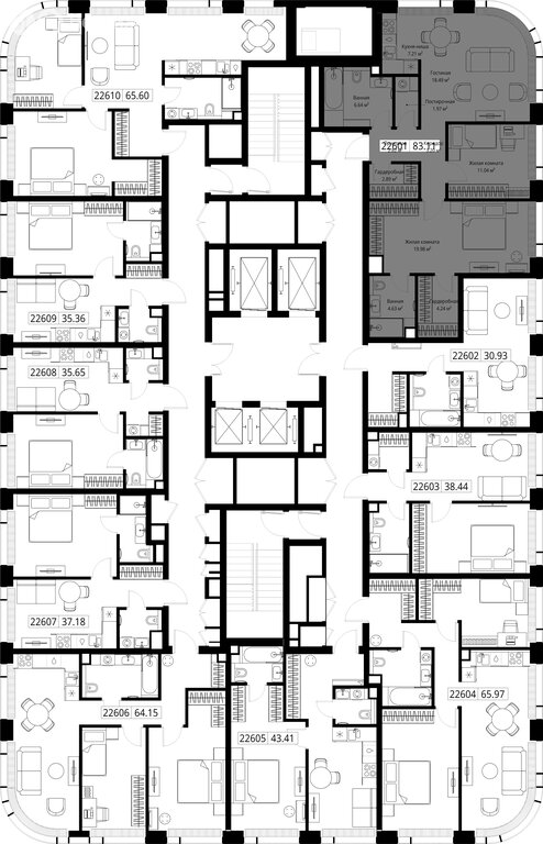 83,1 м² • 2-комн. • 26 этаж