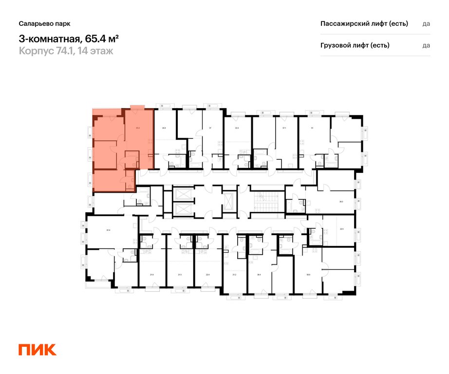 65,4 м² • 3-комн. • 14 этаж