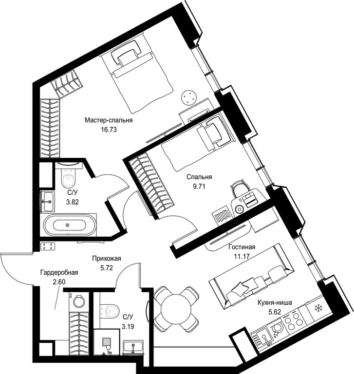 58,6 м² • 2-комн. • 14 этаж