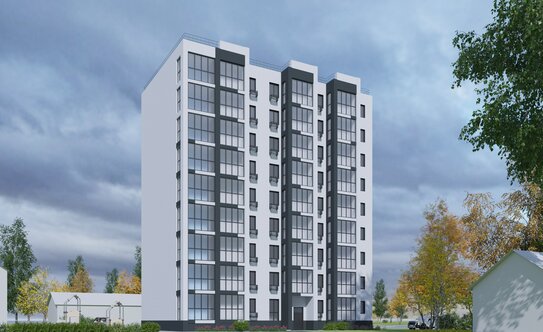 Девятиэтажный дом современного типа, относящийся к комфортклассу, с коммерческими помещениями на первом этаже.