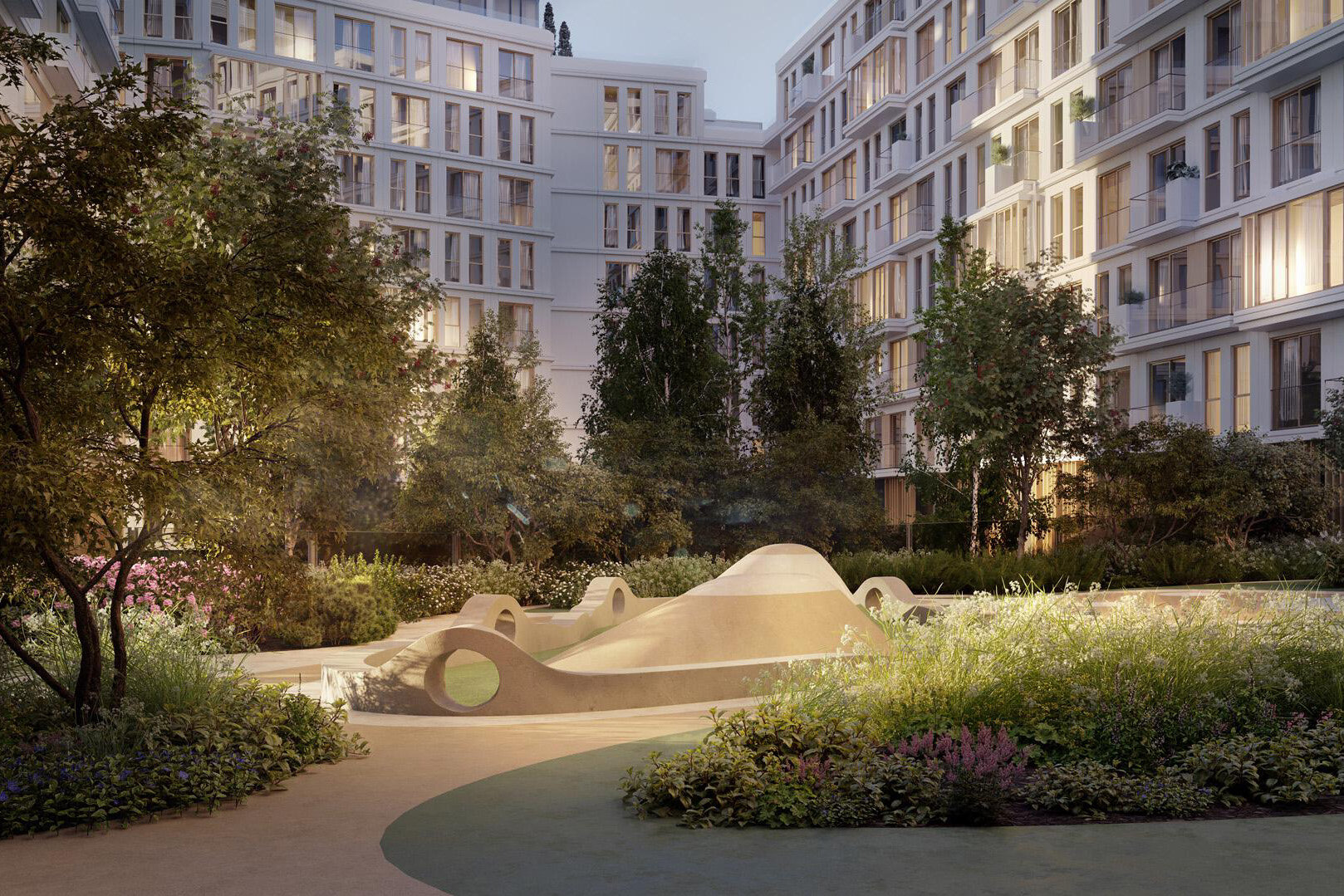 На первых этажах домов откроются рестораны, винотека, минимаркет, аптека. Кроме того, в ЖК будет частный детский сад на 125 мест и подземный паркинг.