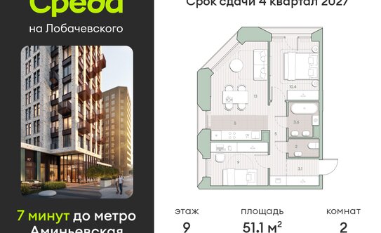 - 26,94 млн ₽Москва, микрорайон Очаково, ЖК Среда на Лобачевского, к5.6Очаково 18 мин.