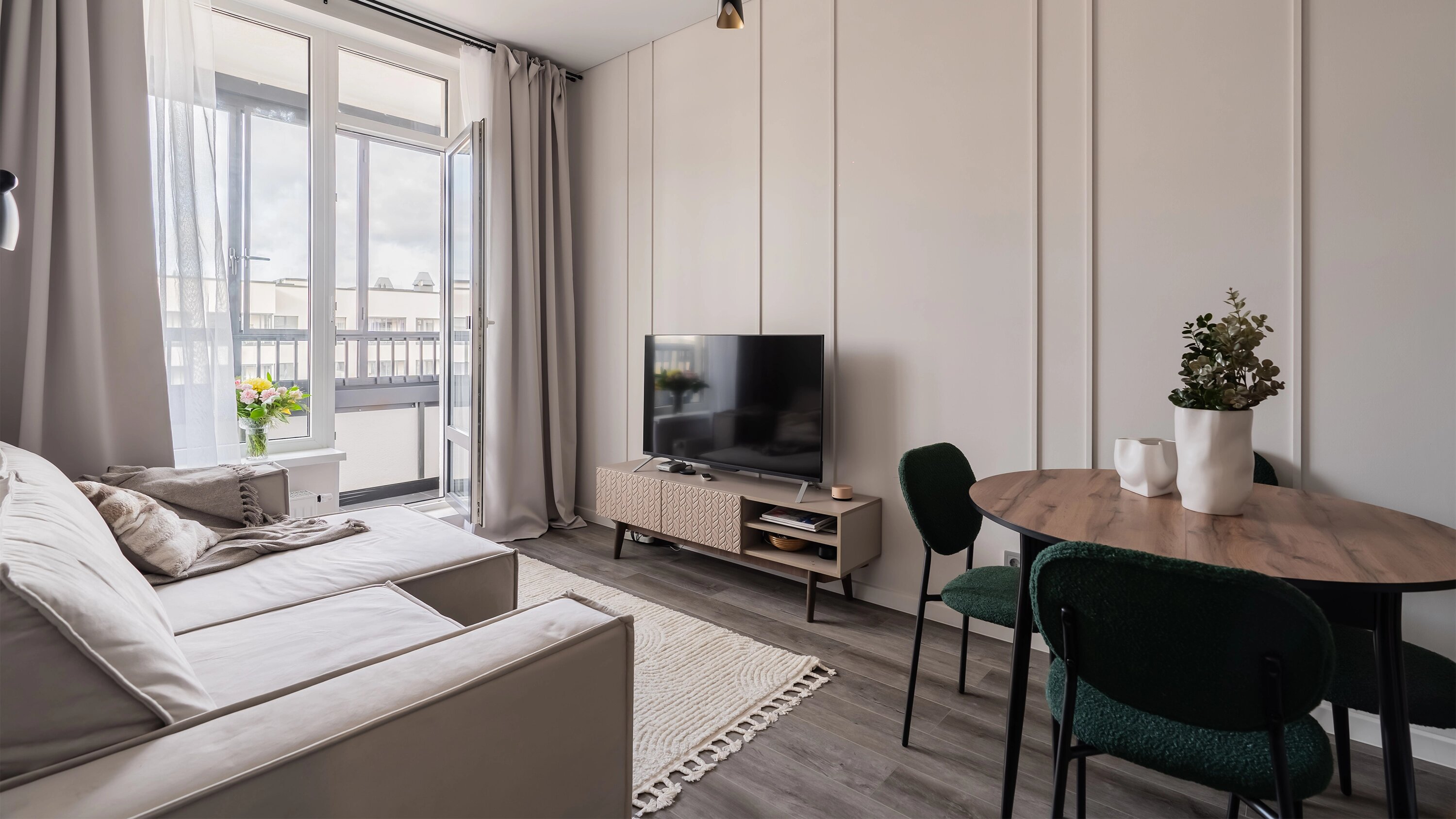 На весь проект, от идеи до реализации, ушло ровно два месяца. Такой темп стал возможен благодаря удачным исходным данным и здравому подходу заказчиков. Квартира в ЖК «Солнечный город» стала первым жильём для молодой семьи с новорождённым ребёнком. И хотя пара понимала, что через несколько лет им придётся задуматься о расширении, жить в обезличенном интерьере они не хотели. При этом бюджет был ограничен — в этот проект никто не собирался «вкладываться навсегда».