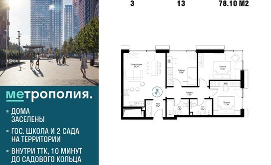 - 75,1 млн ₽Москва, микрорайон Очаково, ЖК Среда на Лобачевского, к5.2Очаково 15 мин.
