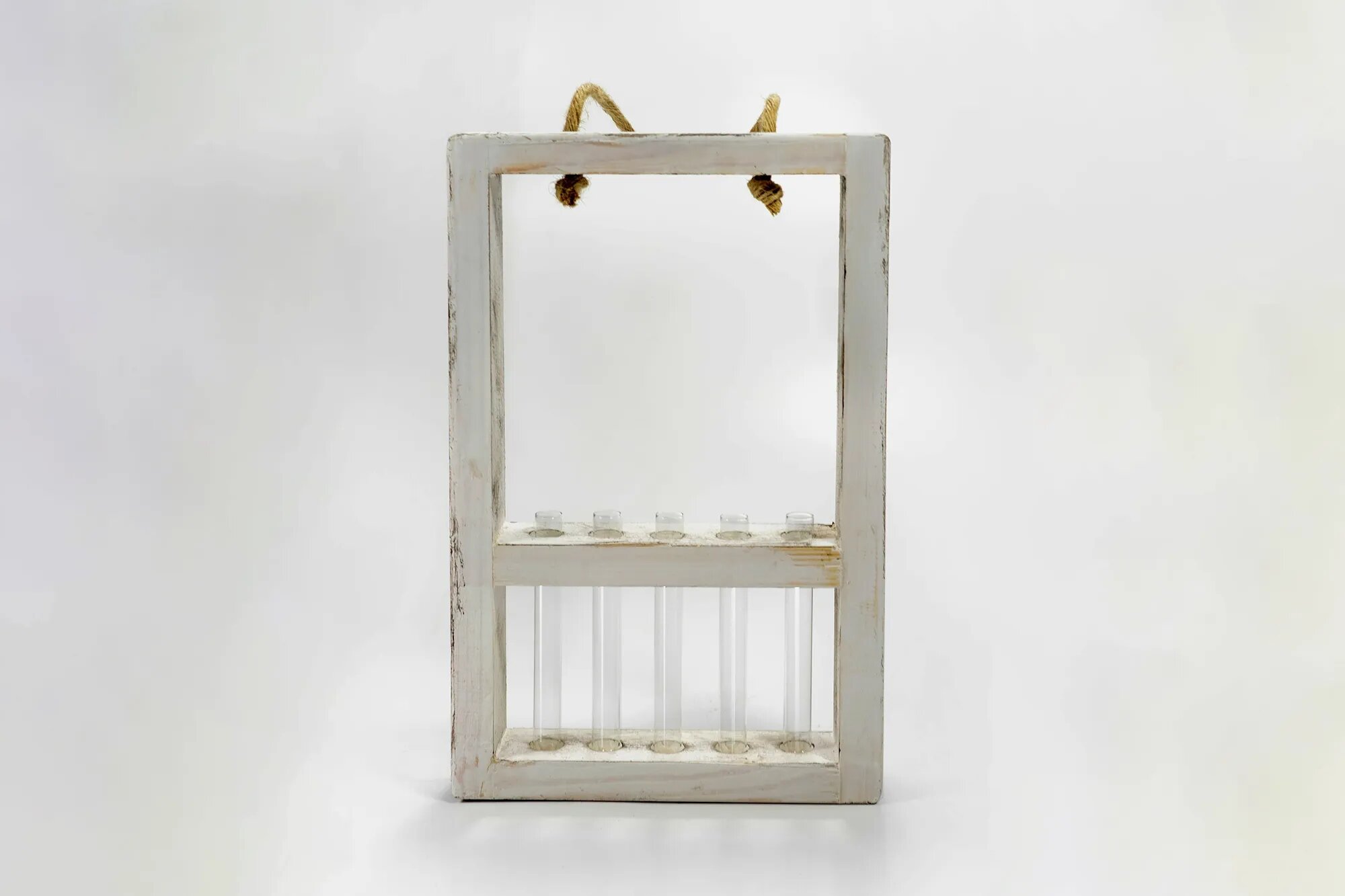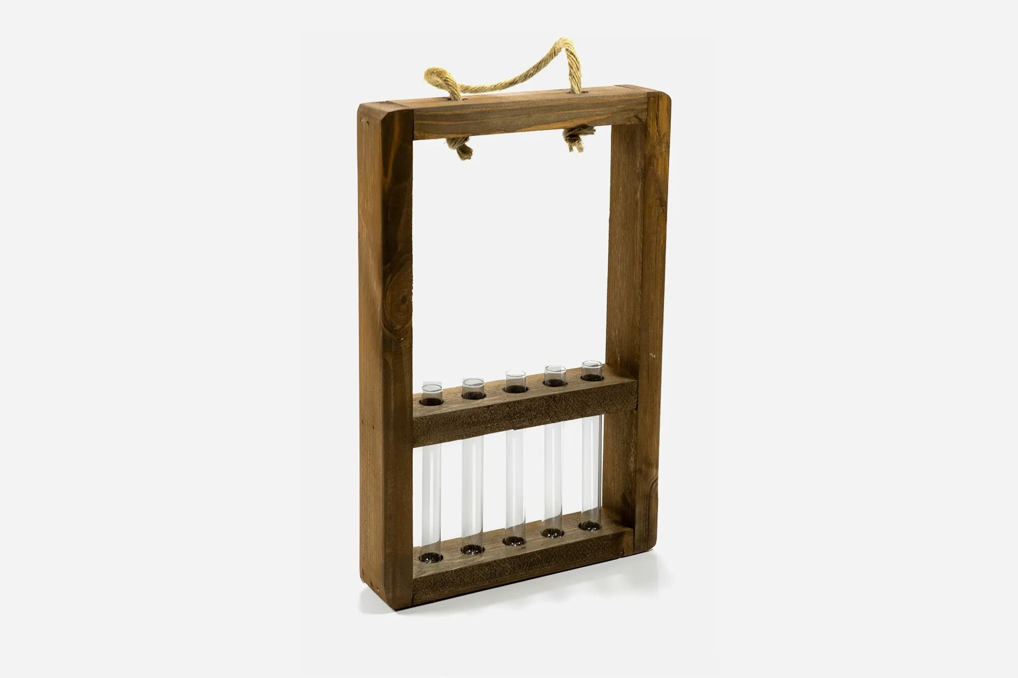 Цветочная композиция, живая или засушенная, — это настоящее произведение искусства. Почему бы не повесить цветы в рамку на стену? Креативная «ваза» подпитывает влагой растения с помощью небольших колб, так что не стоит опасаться быстрого увядания. Это отличный вариант для небольших букетов, да и вешать раму совсем не обязательно — она будет хорошо смотреться и стоя.