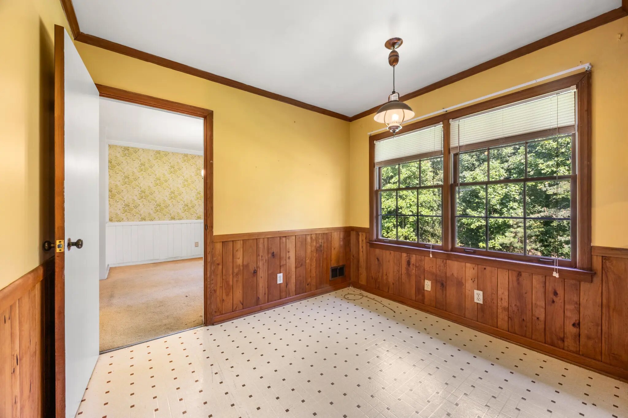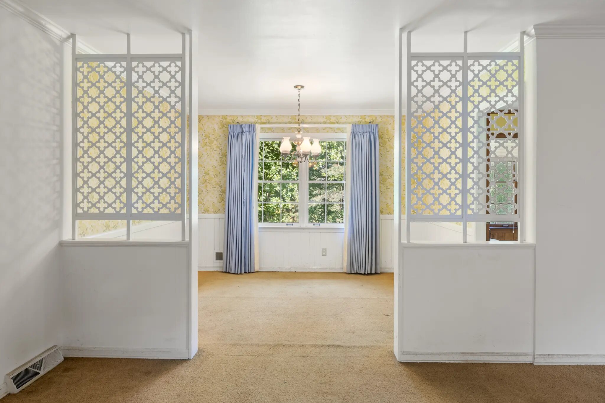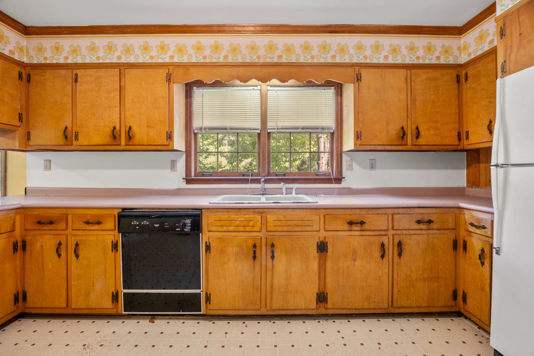 Здание было построено в 1963 году, в нём четыре спальни и три ванные комнаты общей площадью около 230 квадратных метров. Как видно из фотографий, кухня оформлена в стиле ретро. Жёлтые стены, деревянные панели, обои с цветочным узором, окна с жалюзи, потолочные светильники и узорчатый пол в других комнатах дополняют винтажный стиль дома.
