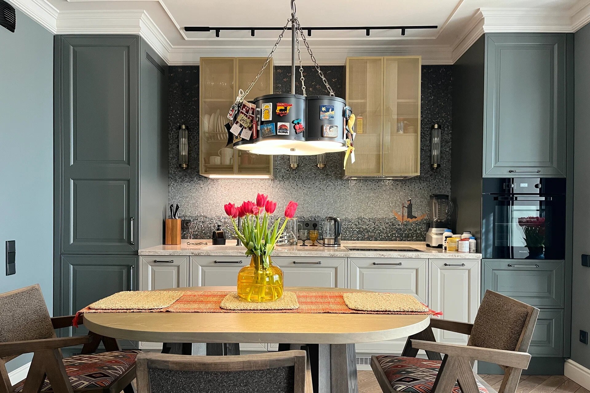 Подвесная люстра над столом из истории «История первого ремонта, который стал воплощением мечты»