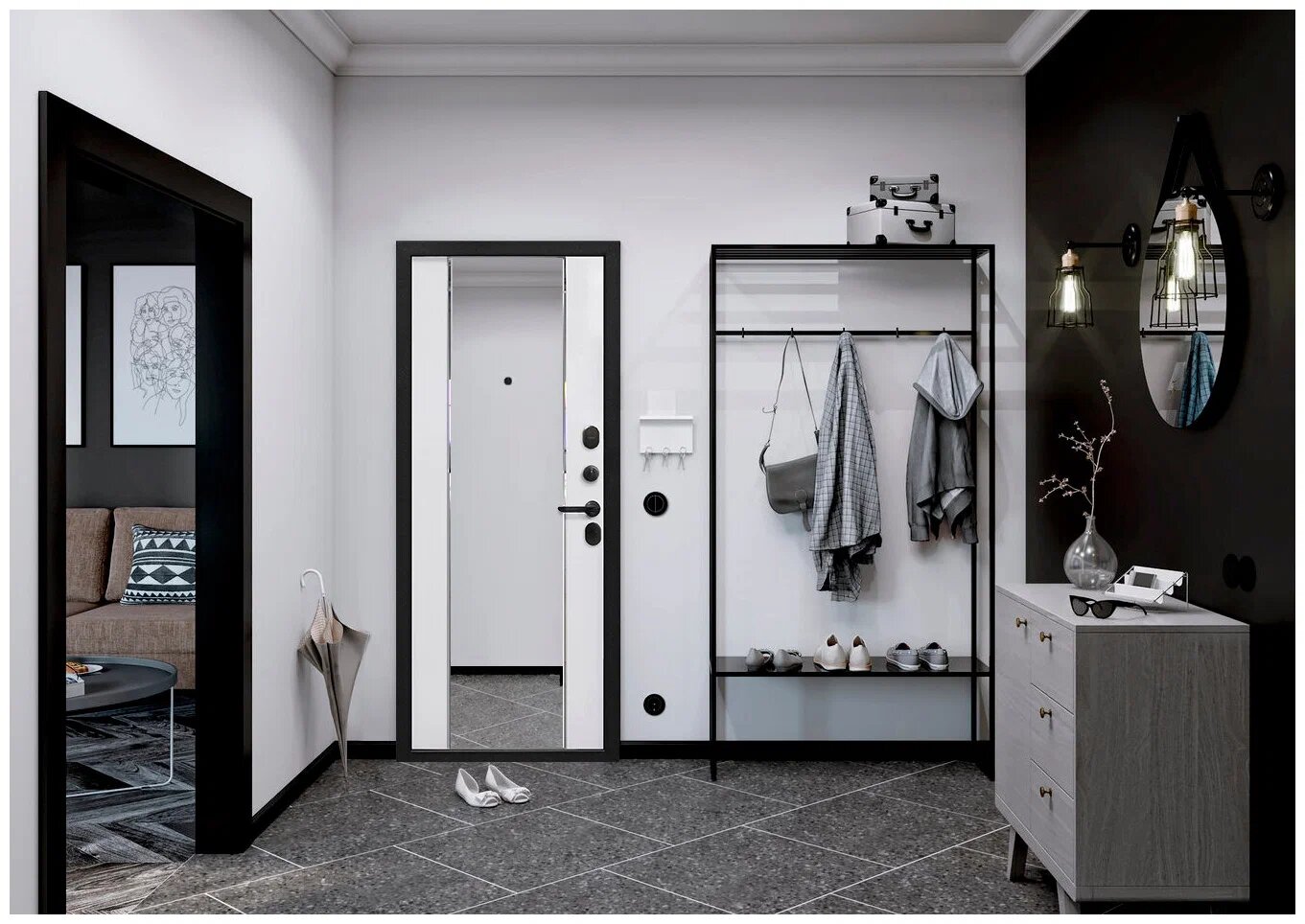 Зеркало не стоит вешать напротив двери: наши предки верили, через такой «дуэт» в дом может пробраться нежелательная энергия. Зато на саму дверь зеркало можно вешать без всяких раздумий. Бонусом это сэкономит место в небольшой спальне!