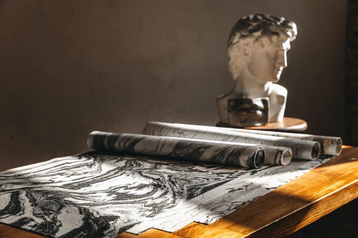 Есть и более сложная технология: срез настоящей горной породы толщиной до 6 мм крепят на стекловолокно полимерным клеем. В этом случае сохраняется натуральный рисунок и увеличивается устойчивость. Такой гибкий камень стоит дороже, чаще его применяют для отделки небольшой по площади поверхности, например барной стойки или обеденного стола.