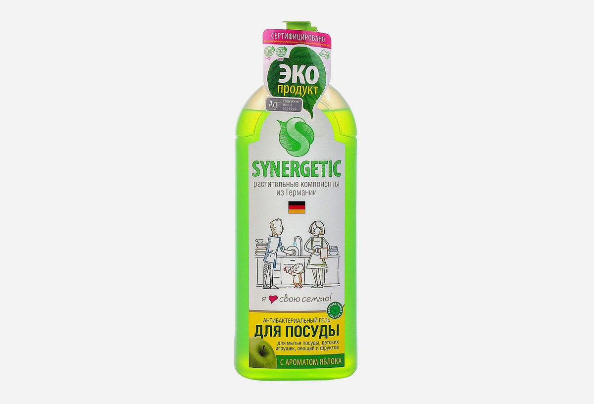 Средство не раздражает кожу рук, поэтому при работе с ним не нужны перчатки. Synergetic подходит для детских игрушек, овощей и фруктов, а также посуды, которая особенно чувствительна к химии.