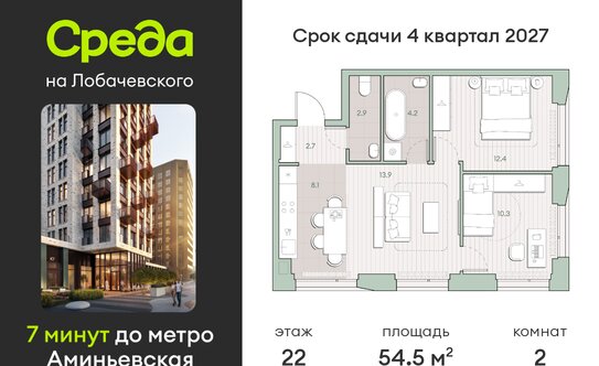 - 29,99 млн ₽Москва, микрорайон Очаково, ЖК Среда на Лобачевского, к5.5Очаково 17 мин.