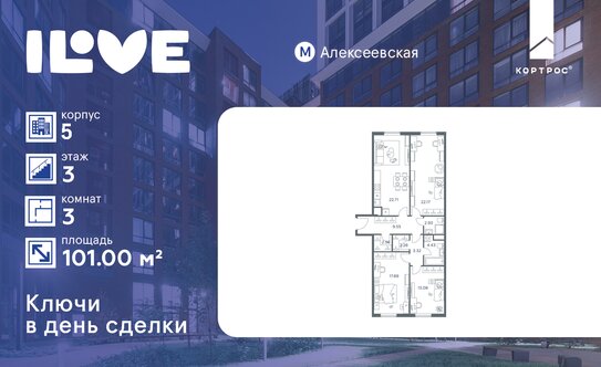- 50,1 млн ₽улица Годовикова, 11к5Алексеевская 14 мин.