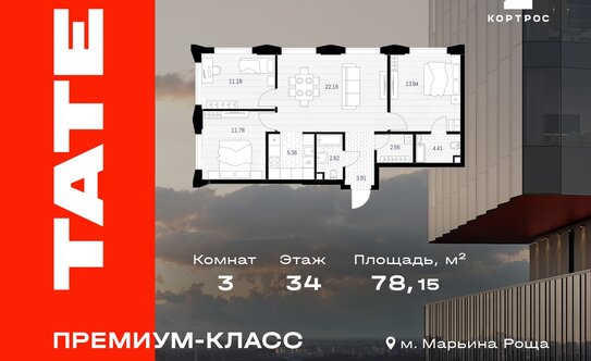 - 37,98 млн ₽Москва, ЖК ТэйтМарьина Роща 13 мин.