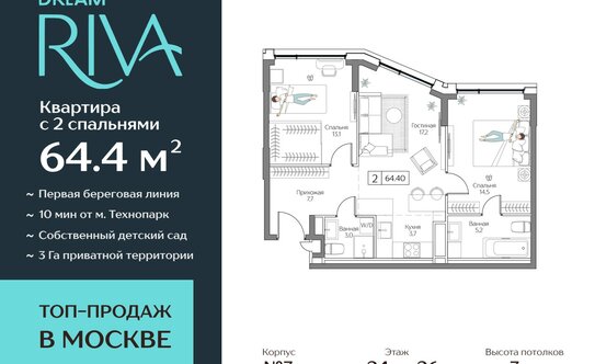 - 41,24 млн ₽Москва, ЖК Дрим РиваВерхние Котлы 8 мин.