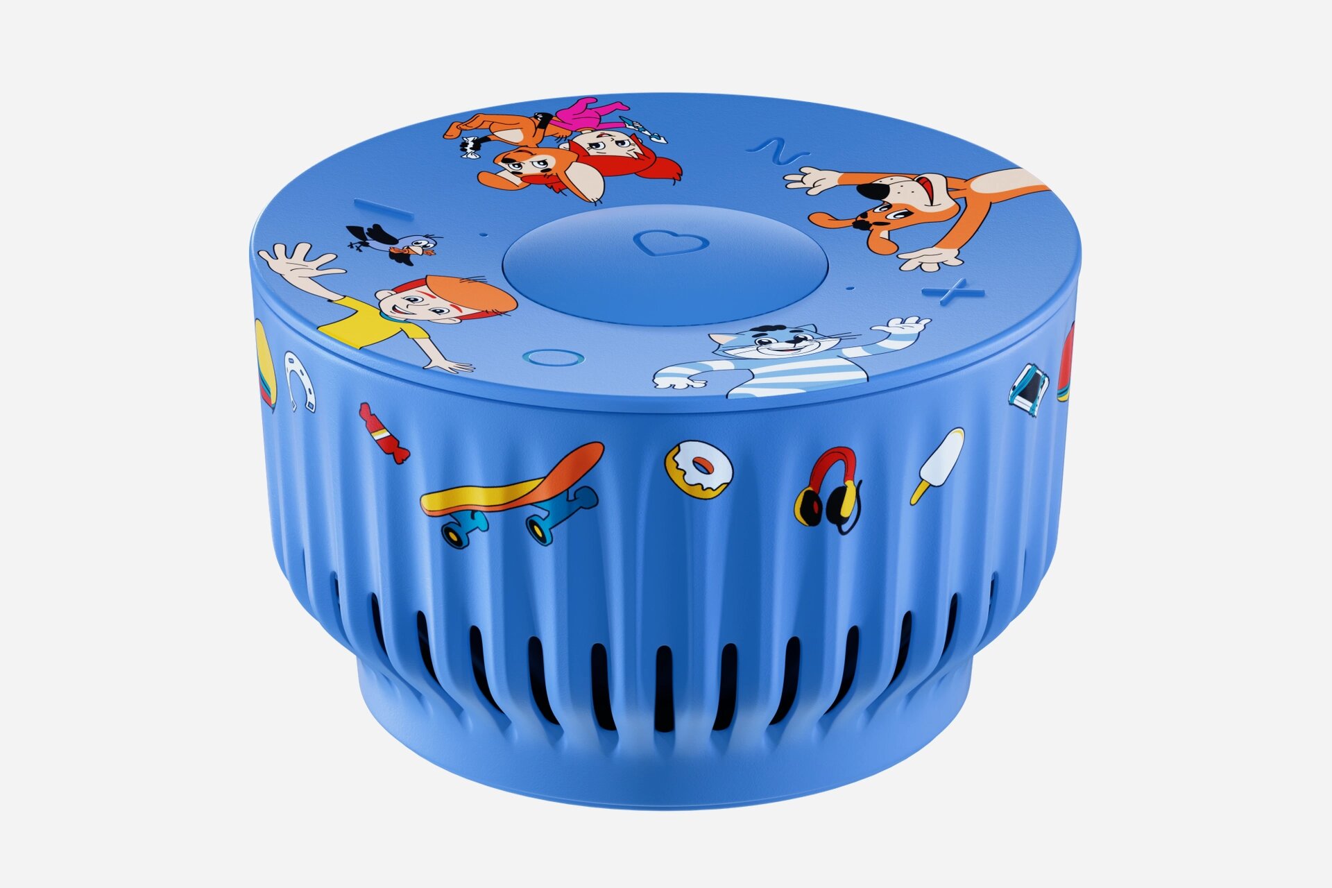 - SberBoom Mini «Простоквашино» — компактная колонка с голосовым помощником, чистым звуком и необычным дизайном идеально подойдёт для детской комнаты.