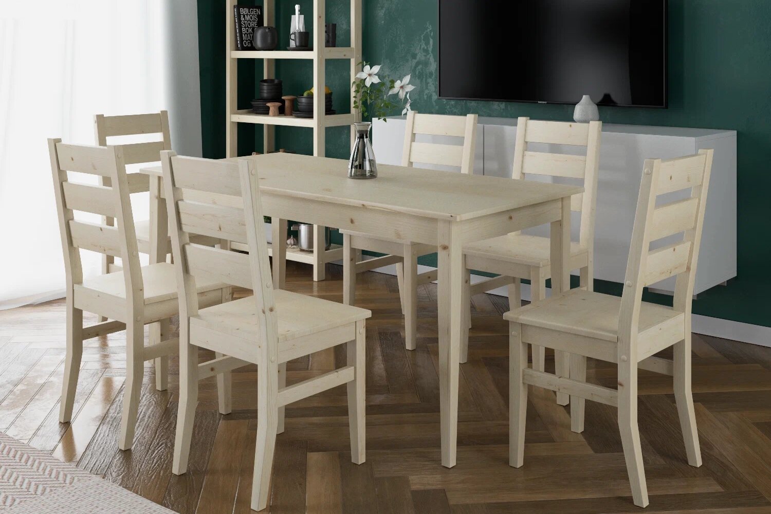 Добавьте в такой интерьер немного личного: фотографии в натуральных рамках, семейные коллекции или статуэтки станут отличным украшением пространства.
