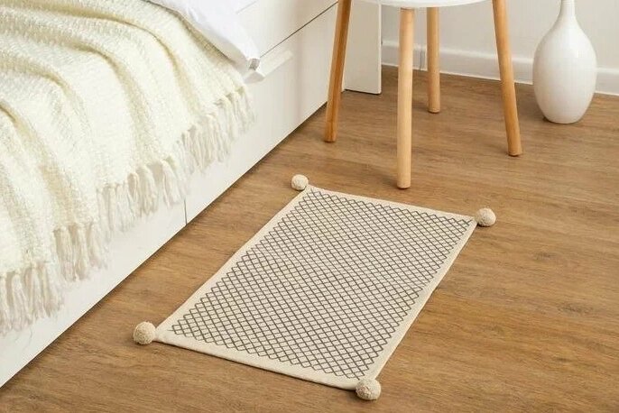 Пол. Отличным напольным покрытием послужит пробка, паркет или ламинат, но расцветка должна имитировать натуральную древесину. Если нужно добавить уюта, то ковролин или ковёр молочно-шоколадной гаммы будут очень кстати.