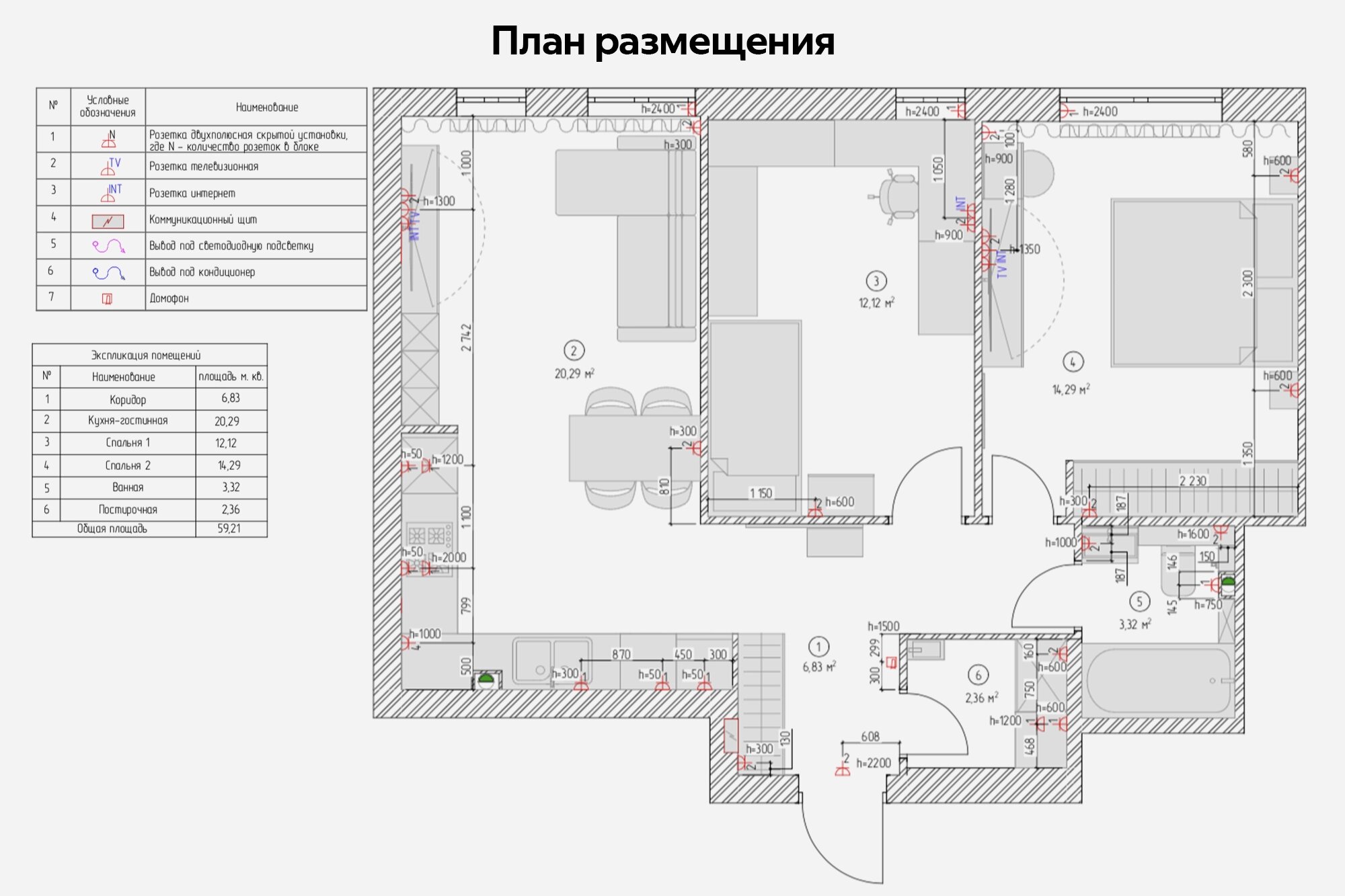 Всё начинается с чертежей: как мы размечаем розетки на этапе проекта. Изображение: Domeo