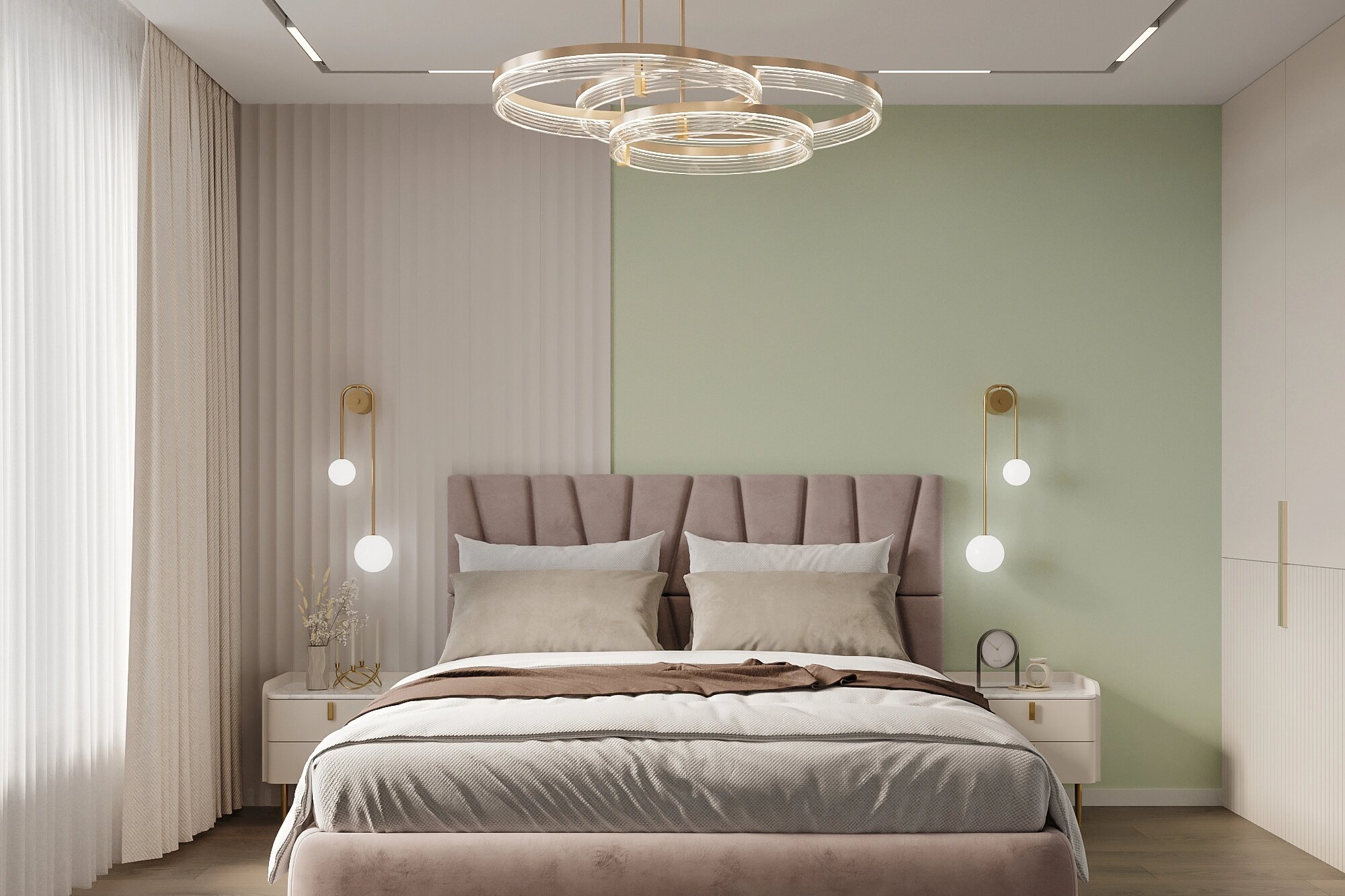 По обе стороны от кровати я предусматриваю тумбы, а над каждой тумбой — по две розетки. Этого хватает для зарядки телефонов, часов, наушников и ночников. Если заказчики пользуются дополнительными гаджетами, количество точек можно увеличить.