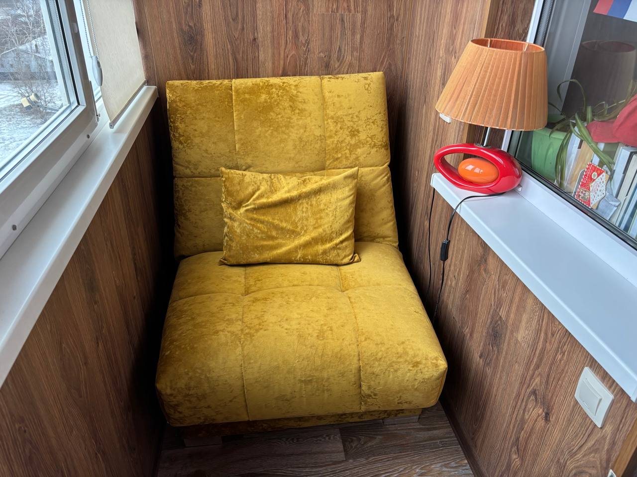 Моя лоджия много лет стояла просто пустая — мы с мужем хотели объединить её с комнатой, но такую перепланировку нельзя узаконить, и от идеи пришлось отказаться. Вместо этого мы сделали внутреннюю отделку и решили организовать на лоджии небольшой уголок отдыха: заказали и повесили рольшторы, поставили на подоконник настольный светильник с умной лампочкой, чтобы можно было менять стиль освещения. Оставалось только купить кресло. Думала, с этим точно не будет проблем, а в итоге подбирала подходящую модель больше месяца!