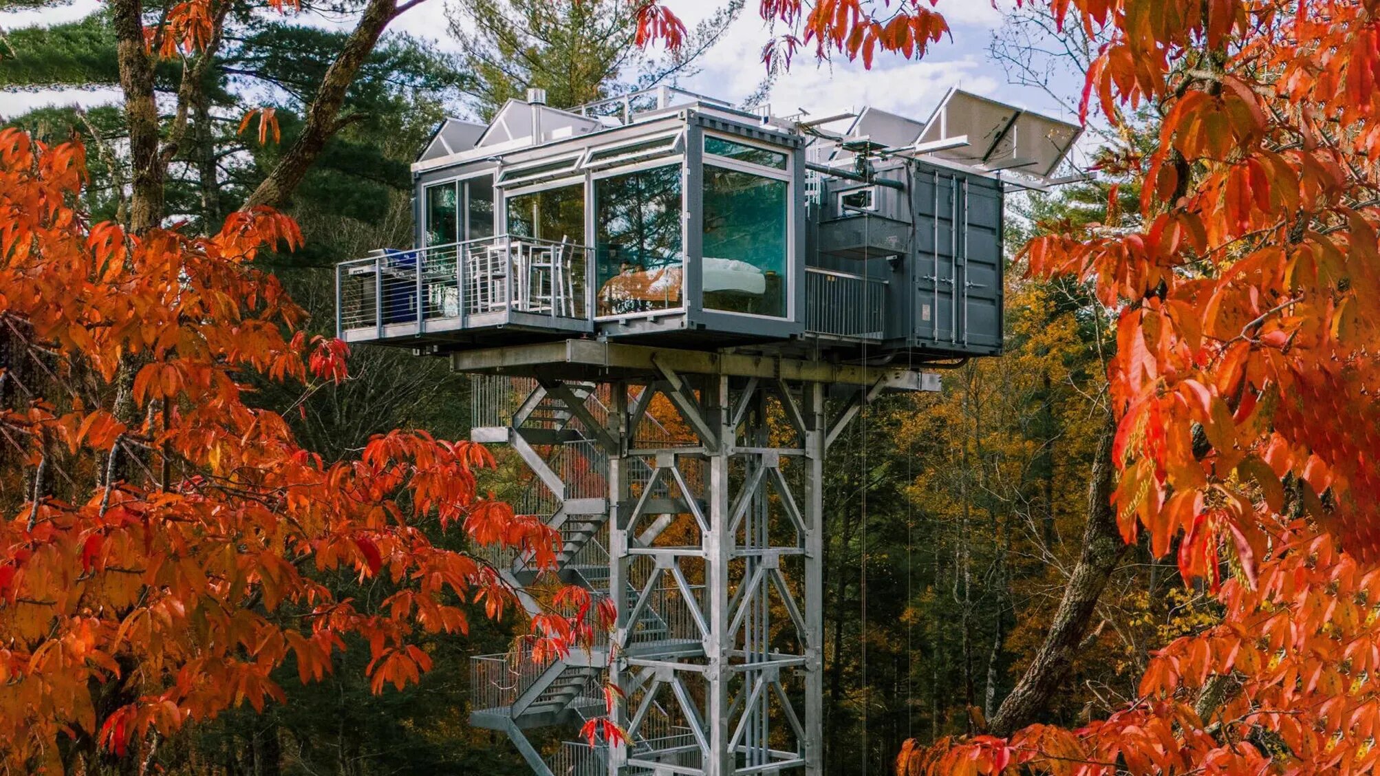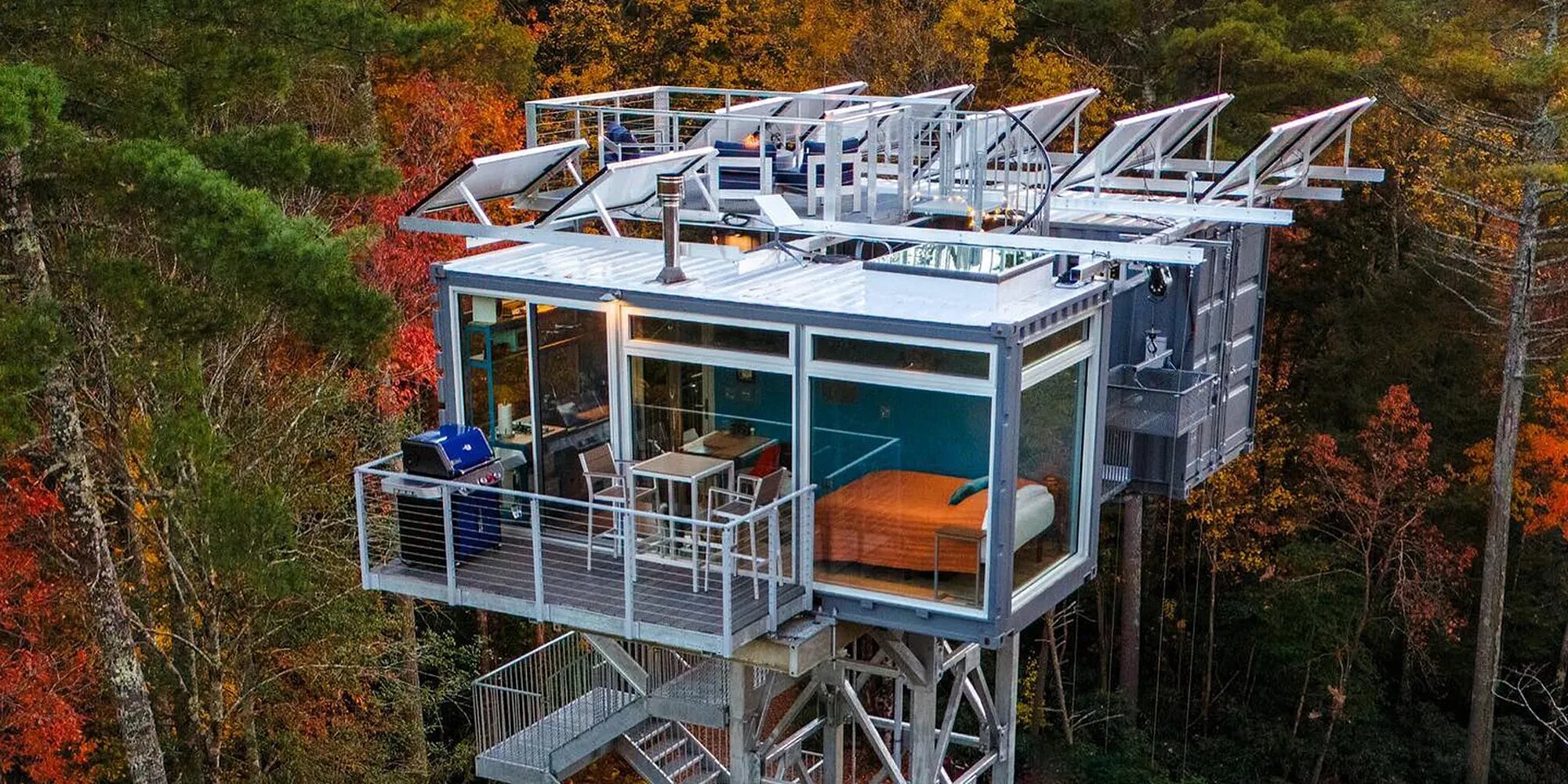 В основном контейнере умещаются небольшая кухня, уютный балкон, обеденная зона и просторная кровать: здесь можно отвлечься от городского шума, наслаждаясь панорамным обзором на дикую природу округа Джорджия. Во второй секции находится ванная комната.