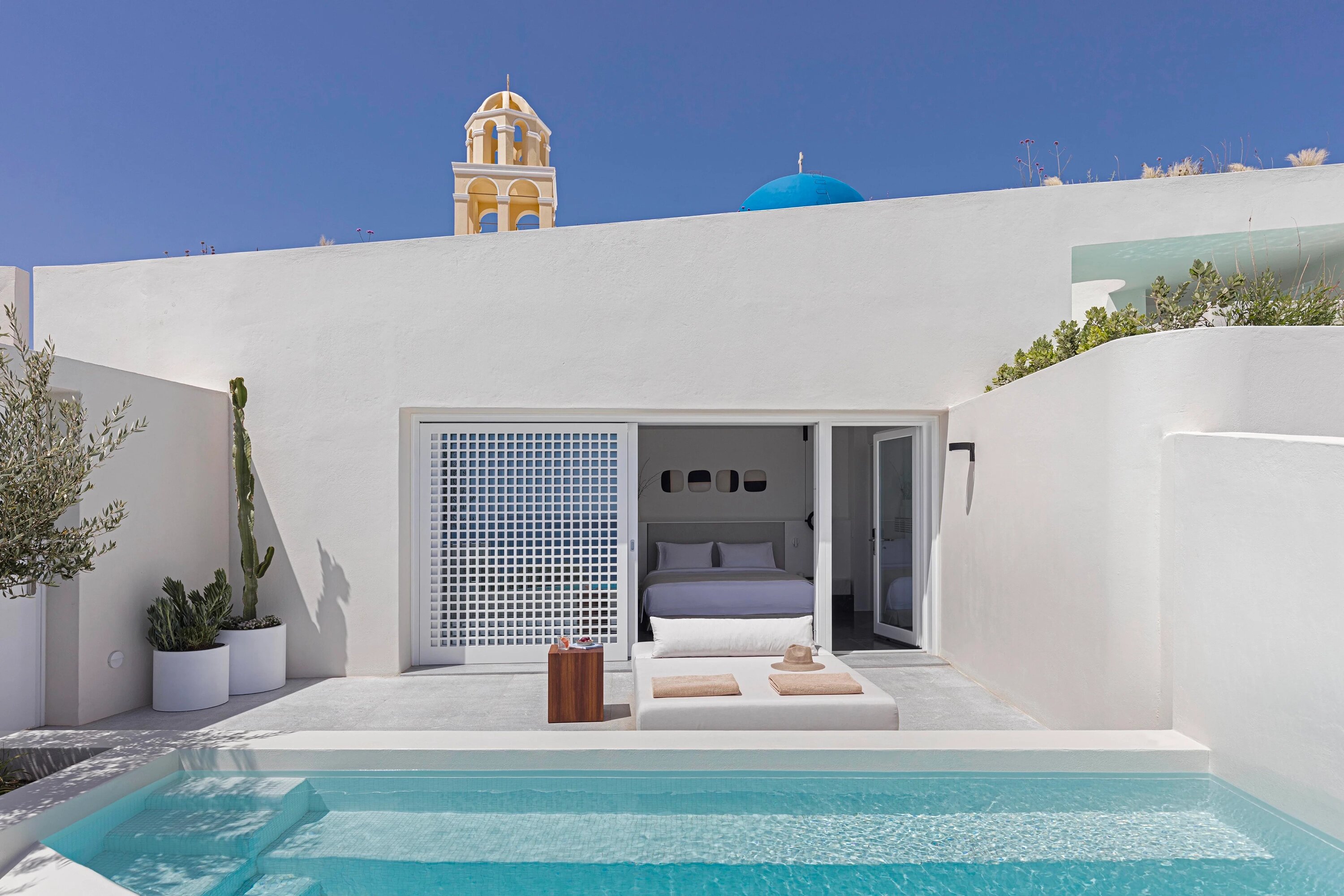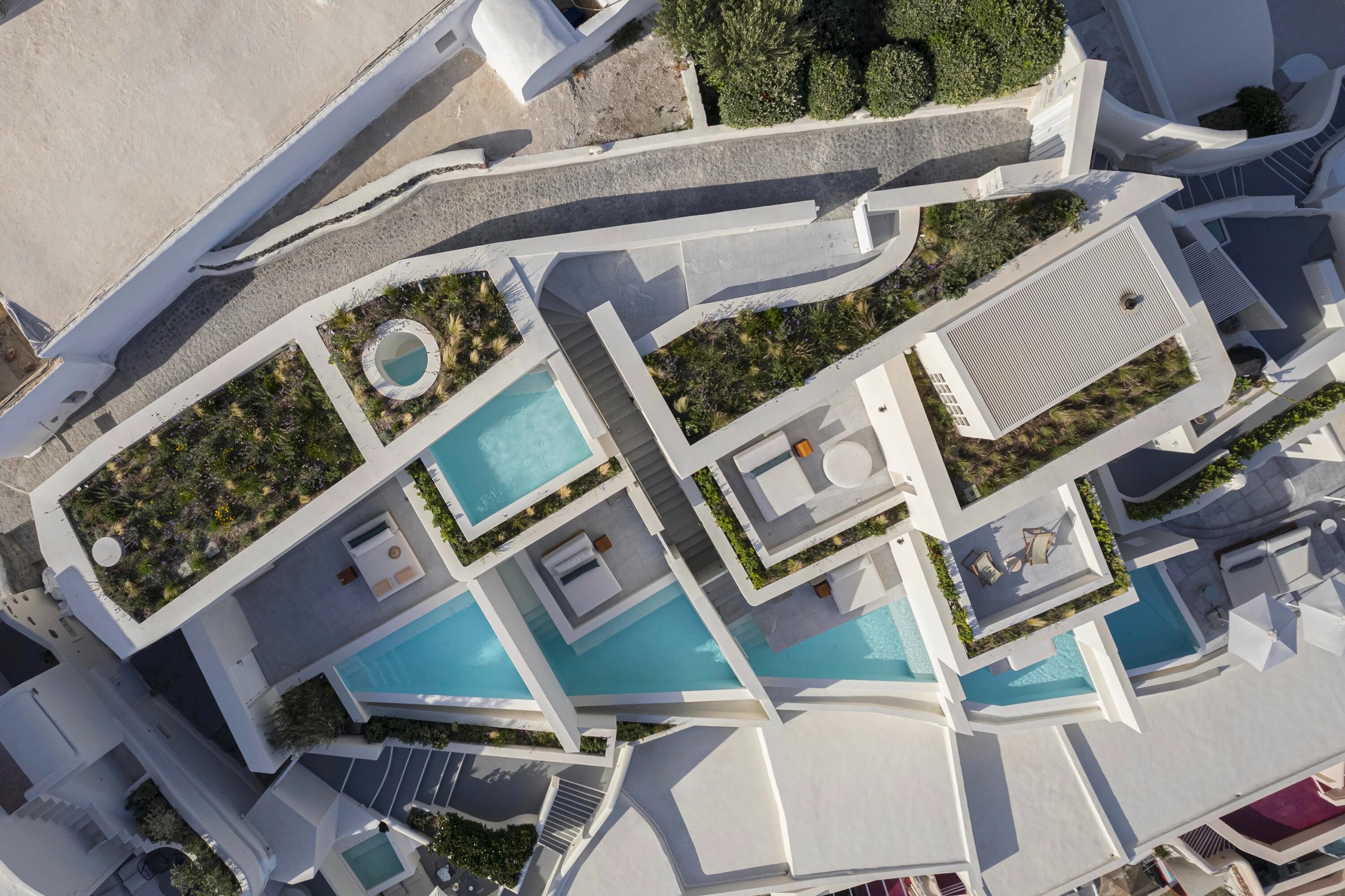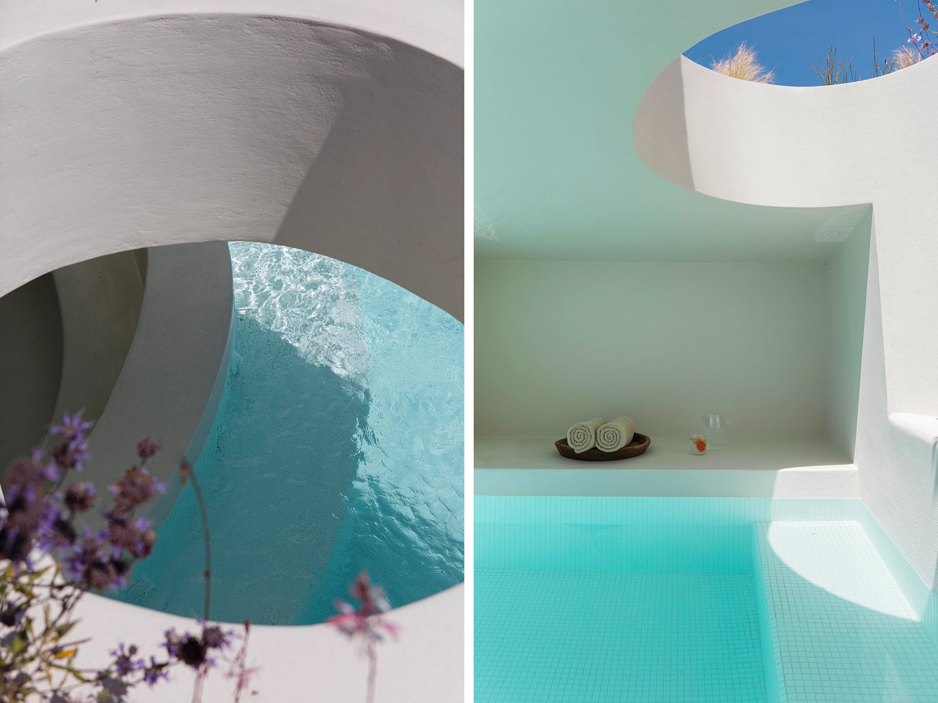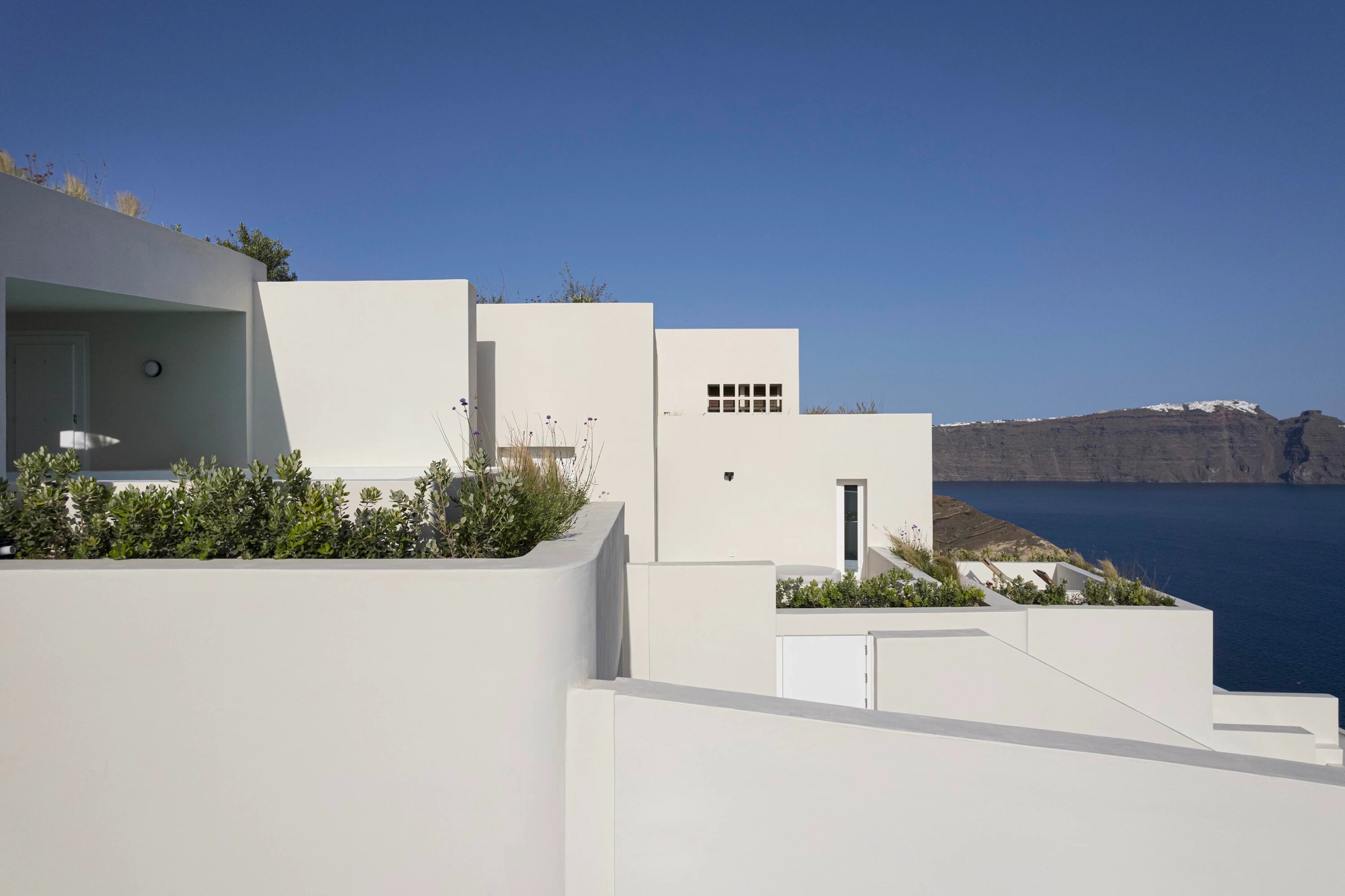 Кубические пещеры на склоне у Эгейского моря — не просто ландшафт, а греческая релакс-сказка на острове Санторини. Белоснежный отель от студии Kapsimalis Architects с пятью мини-виллами расположился на сложном по форме участке, что не помешало создать место для комфортного отдыха.