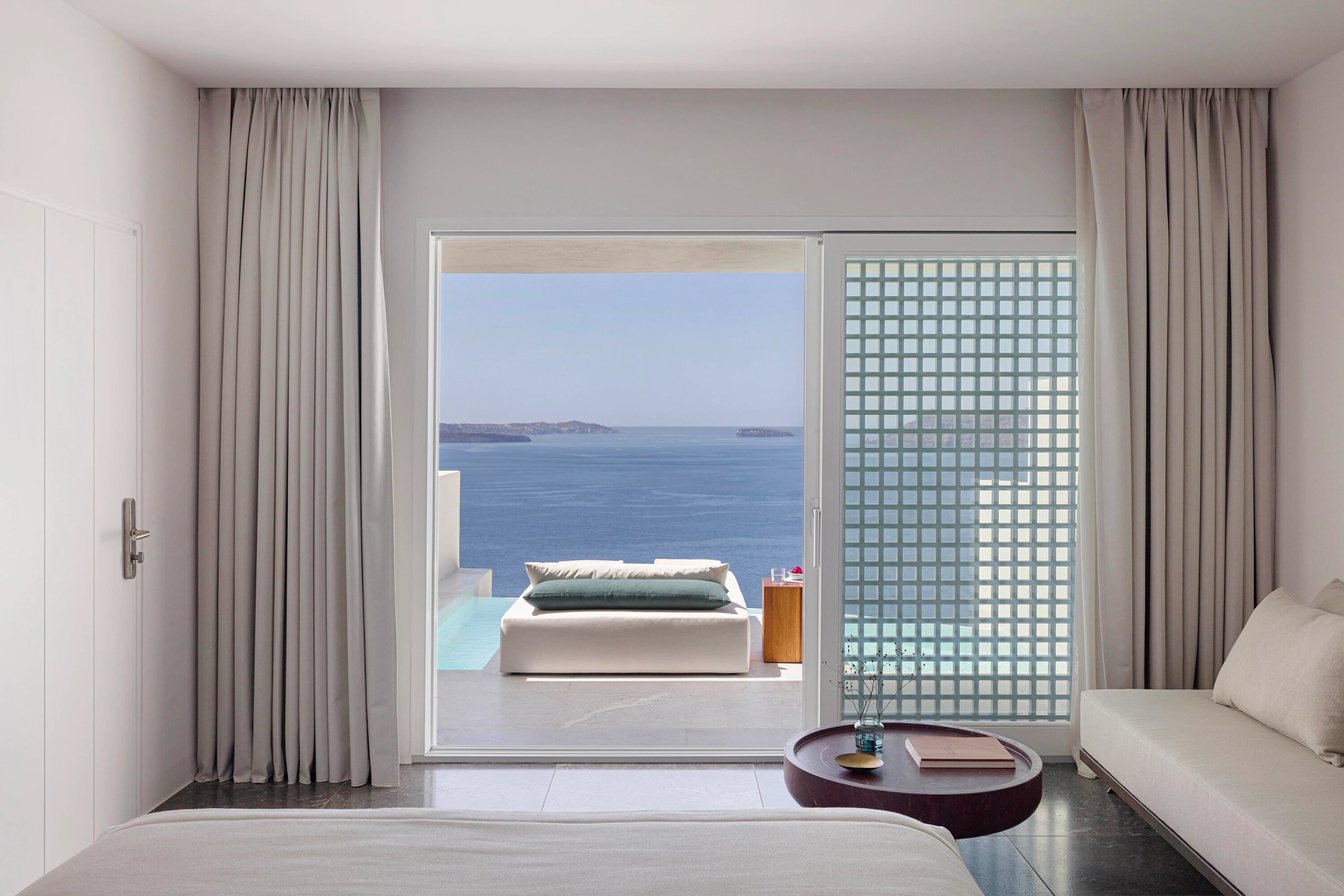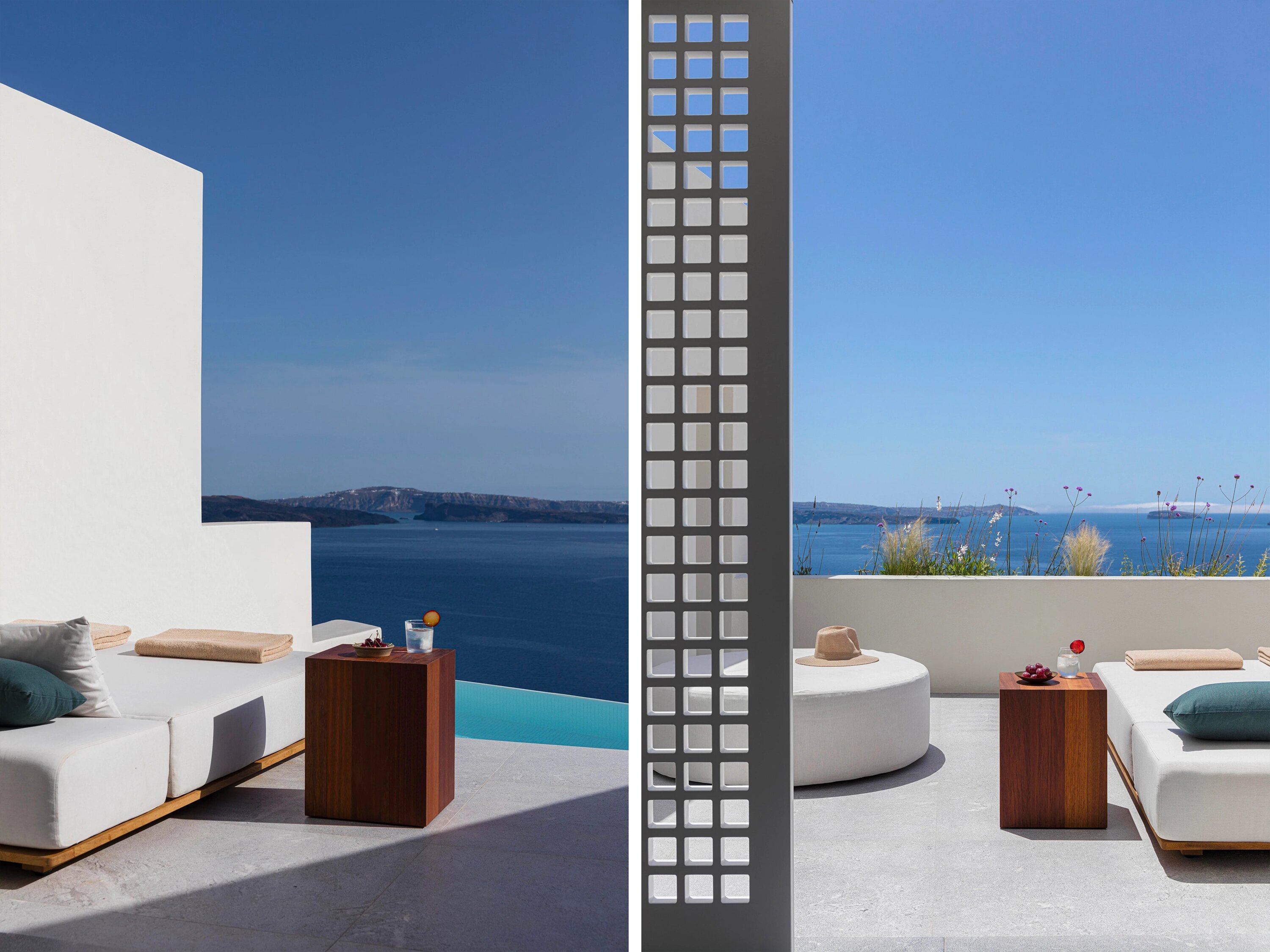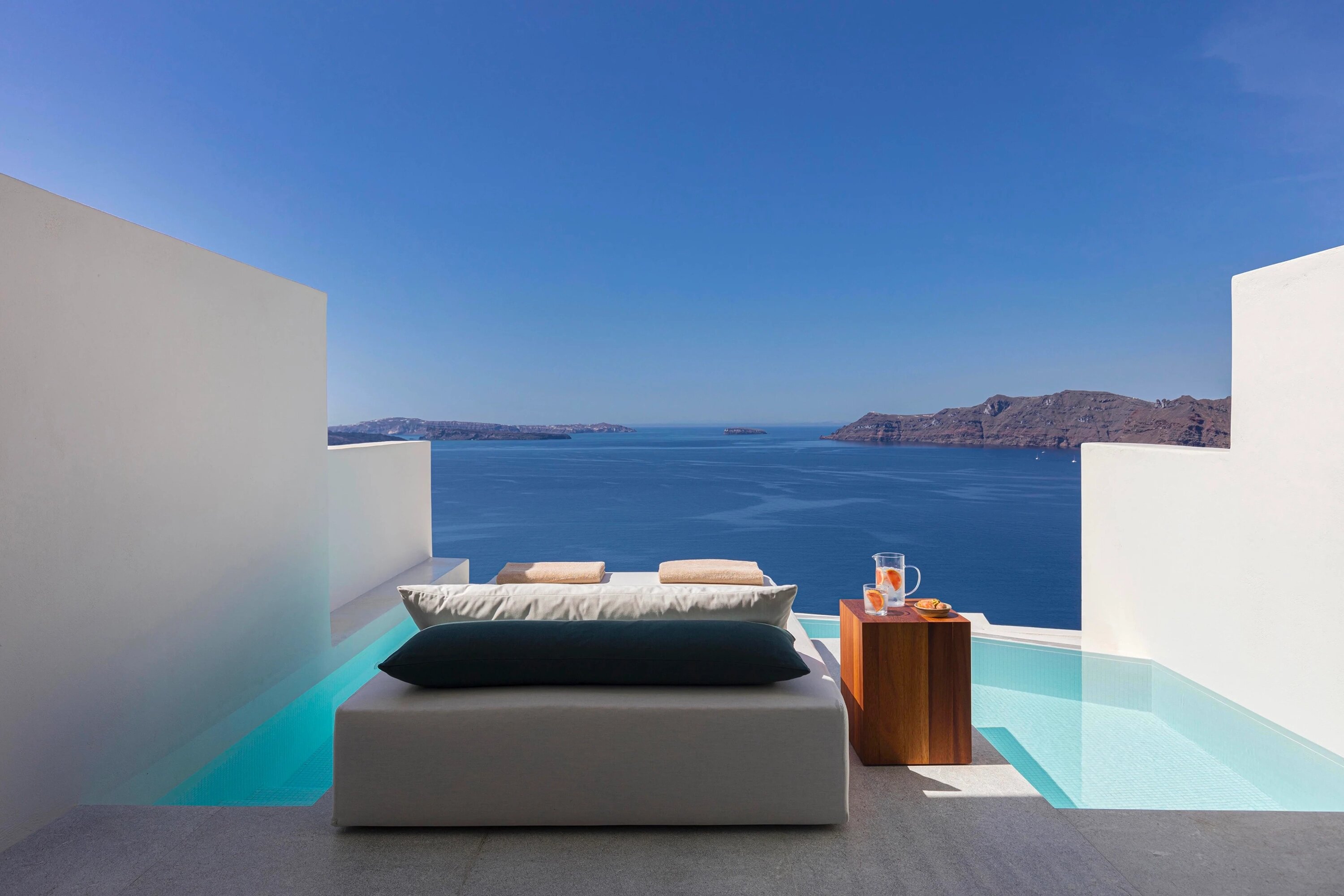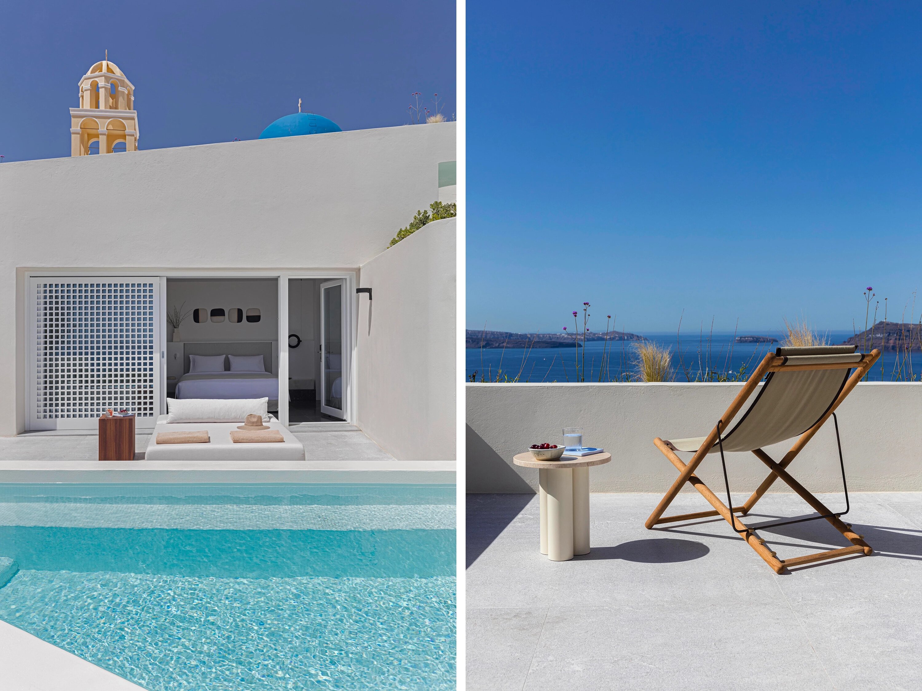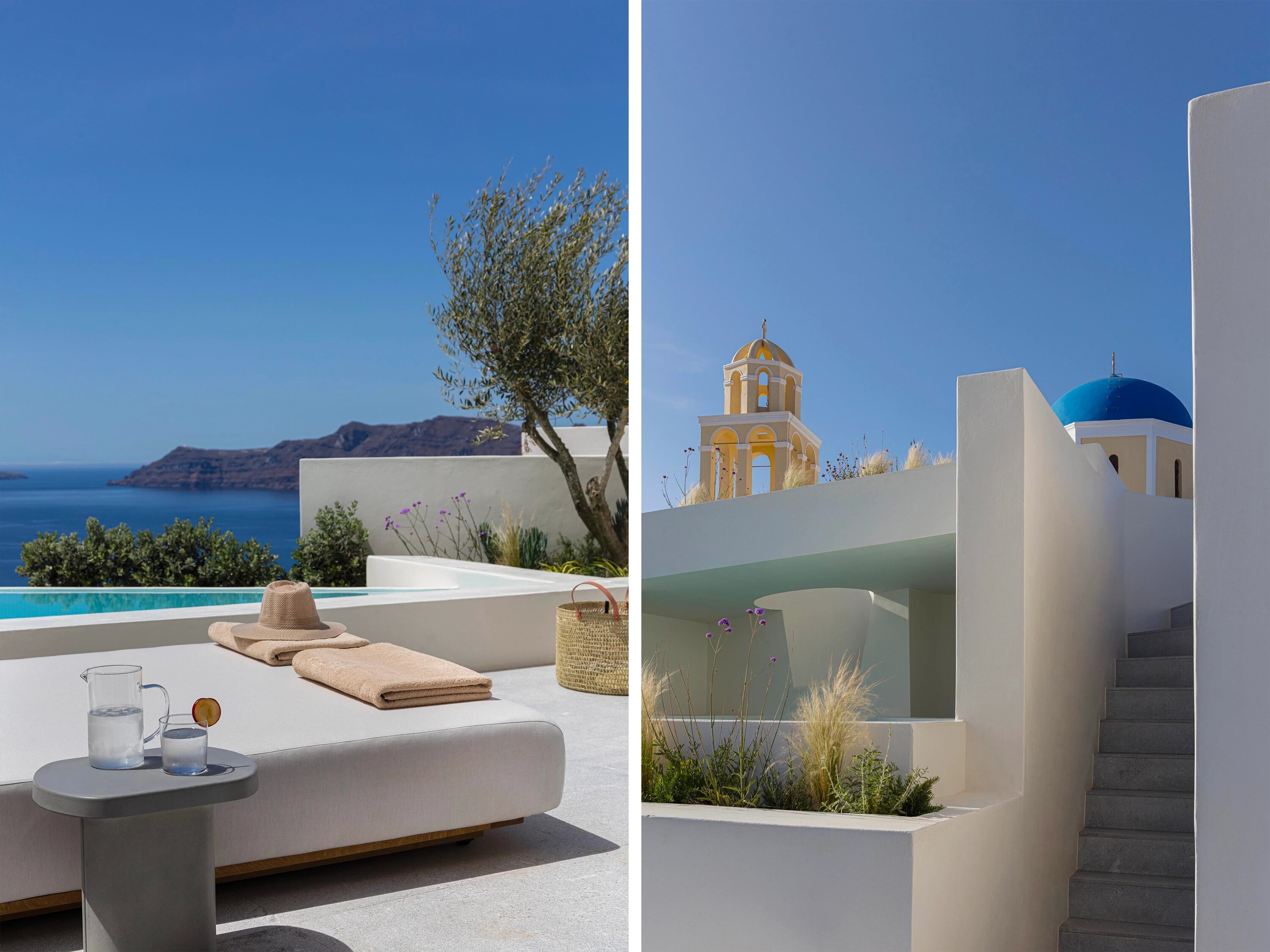 Кубические пещеры на склоне у Эгейского моря — не просто ландшафт, а греческая релакс-сказка на острове Санторини. Белоснежный отель от студии Kapsimalis Architects с пятью мини-виллами расположился на сложном по форме участке, что не помешало создать место для комфортного отдыха.