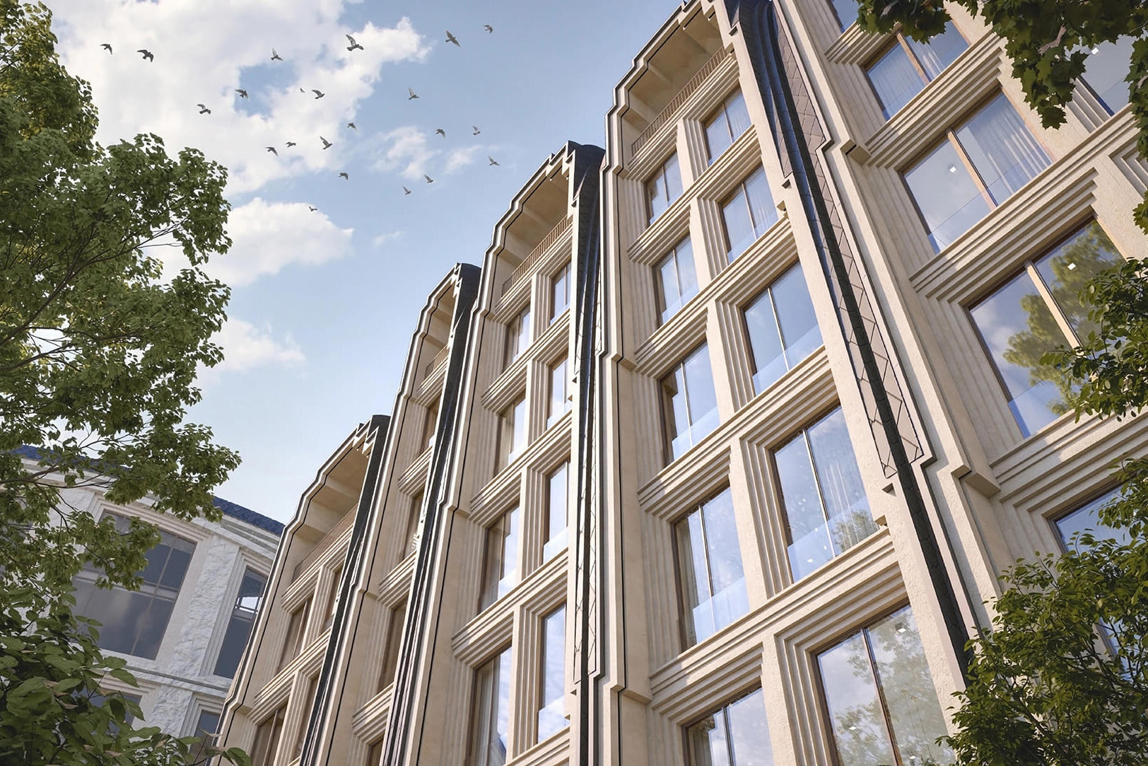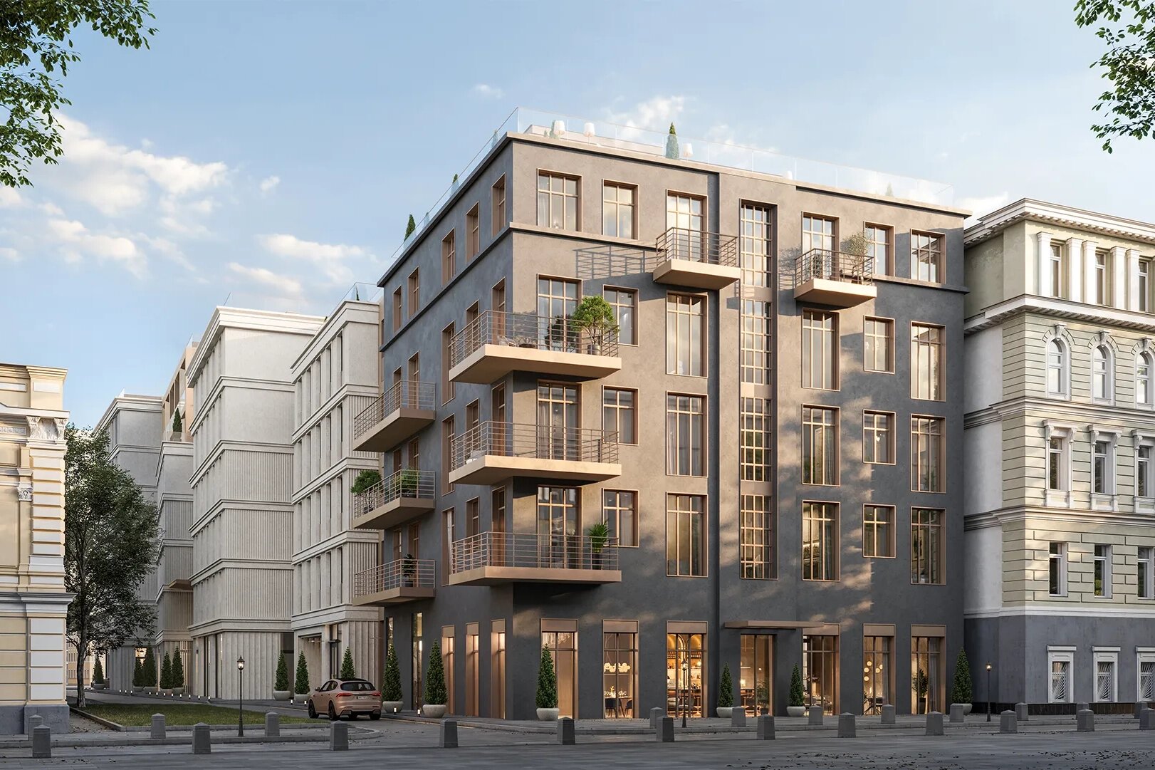 Новостройка занимает шестиэтажное отреставрированное здание начала XX века, в нём всего 34 квартиры площадью от 59 до 387 кв. м. В ЖК есть в том числе редкие форматы: двухуровневые квартиры на первом этаже и двухуровневые пентхаусы с большими террасами, четырёхметровыми потолками и дровяными каминами в гостиных.