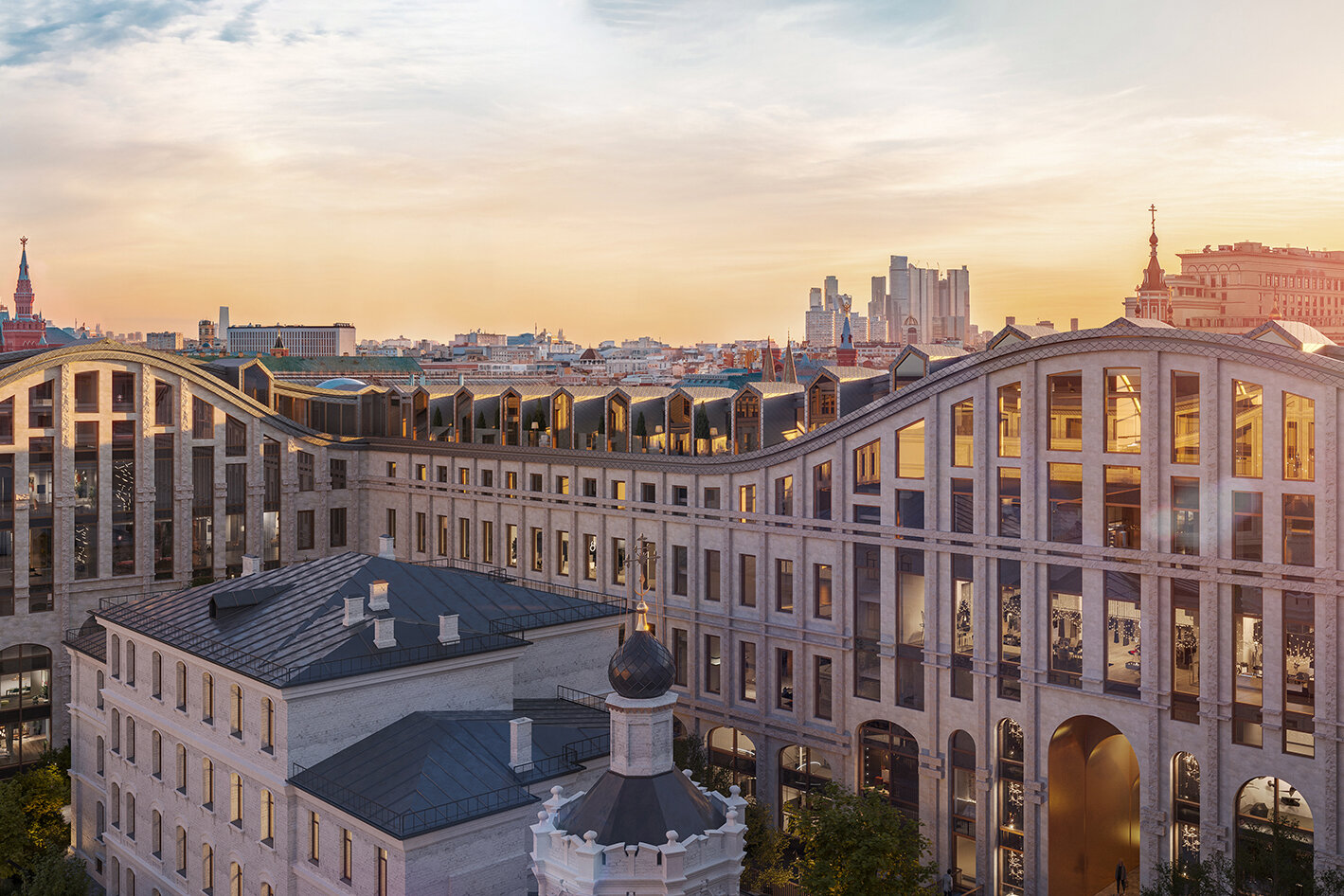 Открывает подборку комплекс «Ильинка 3/8», расположенный в 200 метрах от Красной площади. Новостройка включает семь особняков, из которых три — это отреставрированные здания XIX века, а остальные четыре — построенные с нуля корпуса в неорусском стиле. Здания выполнены по монолитной технологии и имеют высоту от трёх до пяти этажей.