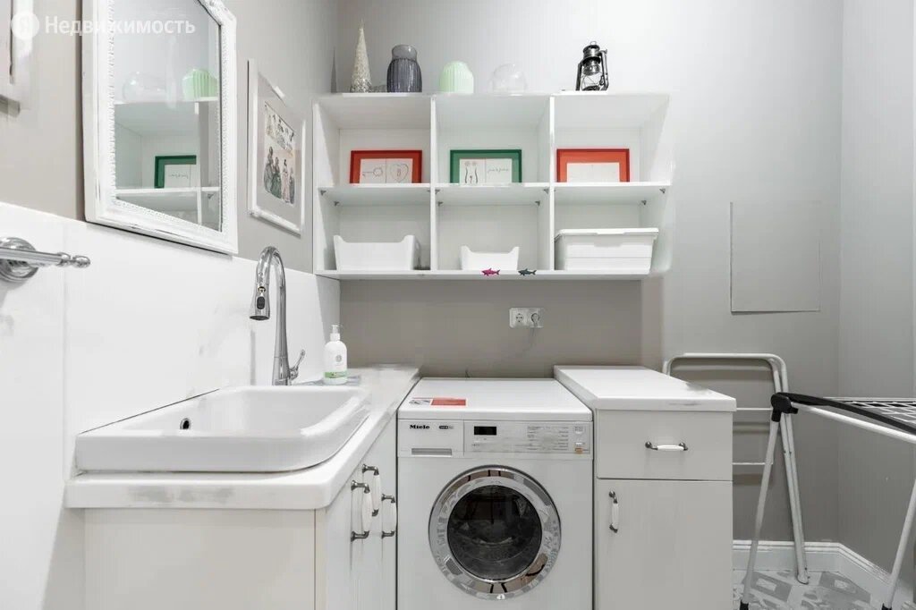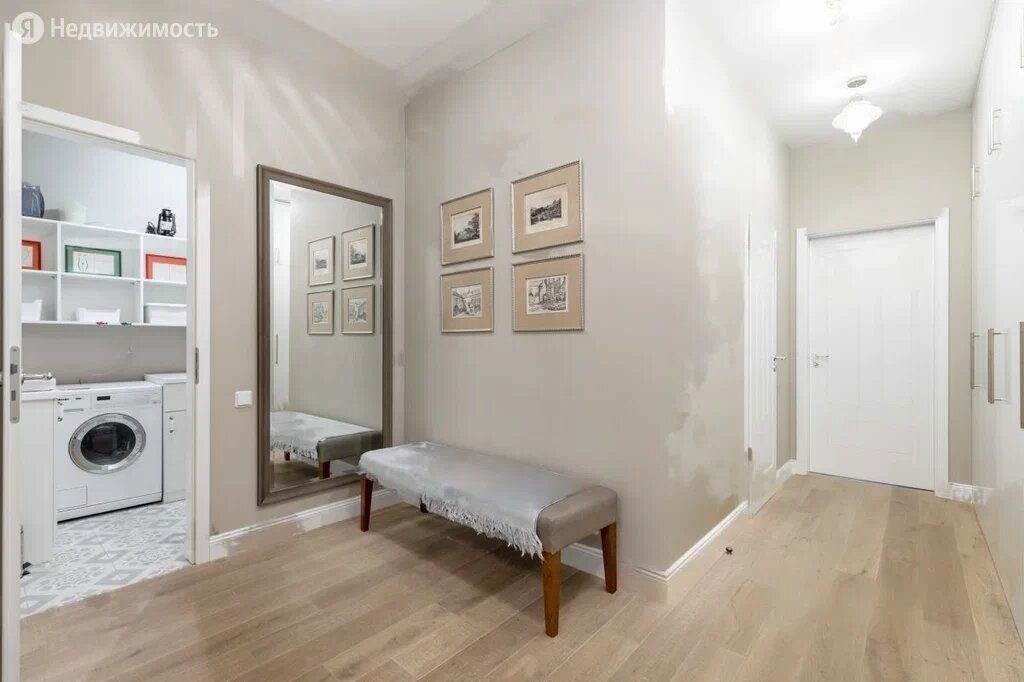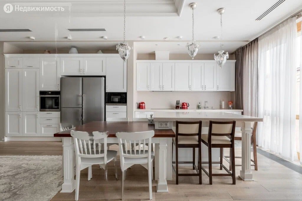 Деревянные массивы мебели смотрятся не громоздко, а гармонично и очень качественно. Шикарная кухня-гостиная создана для жарких кулинарных вечеров и приятных посиделок в компании друзей. Каждая из двух спален оснащена не только своими собственными шкафами для вещей, но и рабочими местами — очень важно, между прочим, для удалёнщиков, когда нужно поработать в тишине и покое и не докучать своей работой домочадцам. Два санузла тоже сыграют на руку арендаторам: никаких тебе утренних очередей! Отдельно хочется выделить постирочную в собственном помещении: удобно и практично.