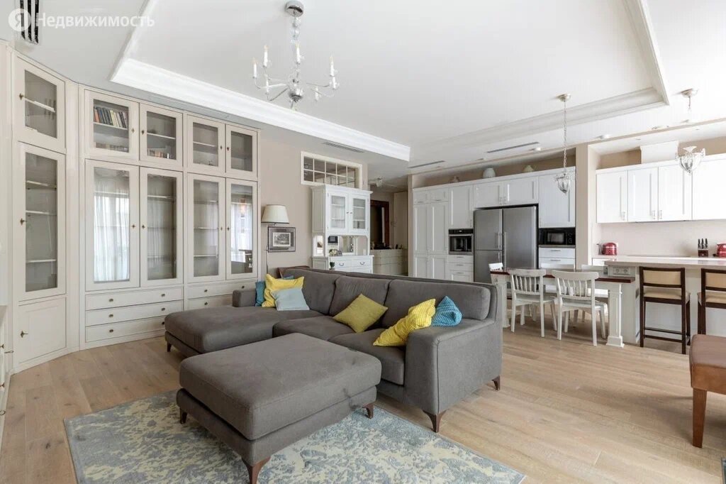 Квартира площадью 150 м2 расположена в монолитном доме 2014 года постройки рядом со станцией Парк Культуры. Несмотря на фактическую близость центра столицы, 12 минут на метро, рядом с домом есть озеленённые участки — например, сквер Девичьего поля. В бетонных джунглях найти «живой островок» важно не только для физического здоровья, но и для психологического тоже. Об инфраструктуре задумываться не нужно: конечно, здесь есть всё, что душе угодно – и даже немного больше.