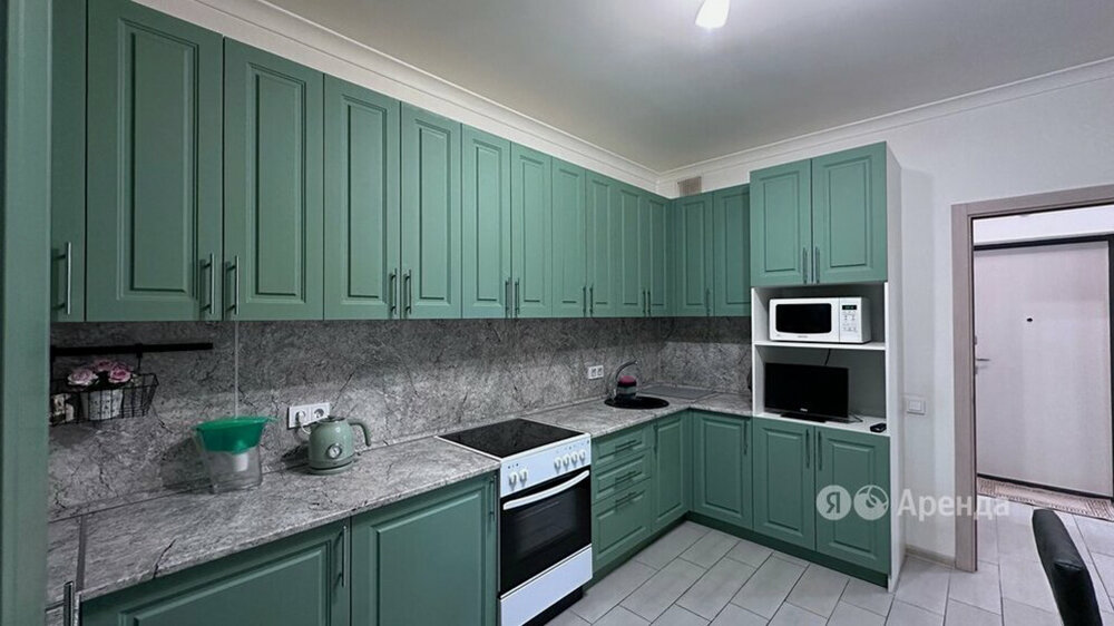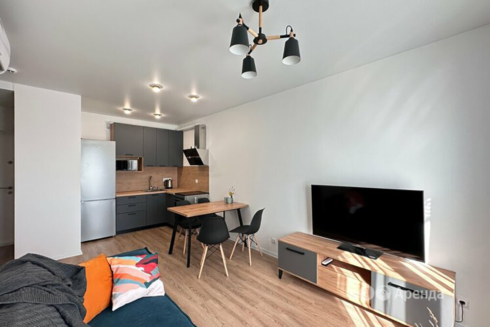 Здесь предлагают светлую минималистичную «двушку». По меблировке и технике вопросов нет, единственное «но» — расположение: квартира находится в 22 минутах езды от метро «Бунинская аллея». За сколько сдают этот лот?