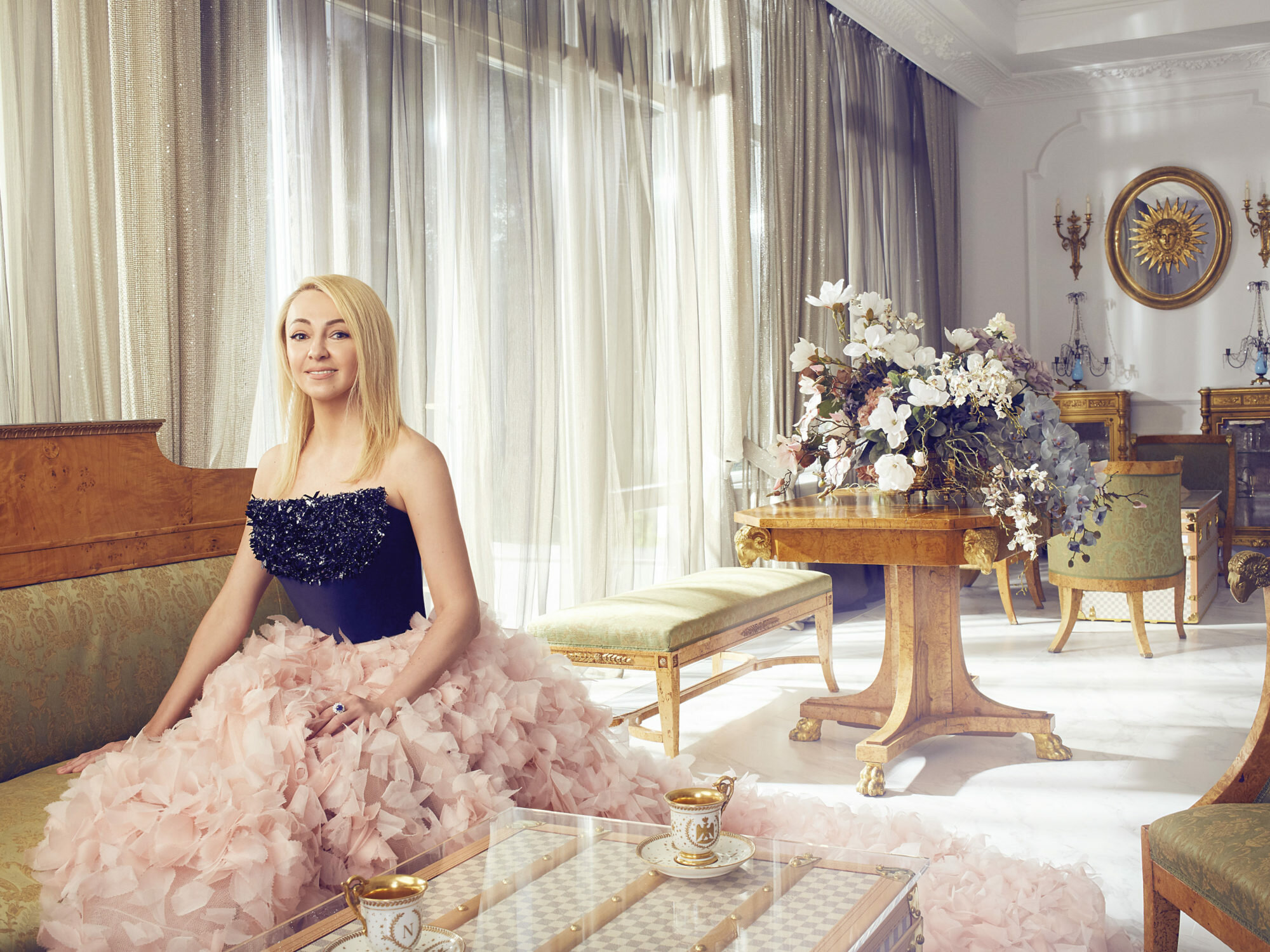 Особняк супругов площадью в тысячу квадратных метров когда-то был стандартной двухэтажной коробкой (если так вообще можно сказать о доме в самом элитном районе Москвы), но его дополнили третьим этажом, а во дворе вырос роскошный сад с водопадом. И, конечно же, возле дома зимой заливают каток. На первом этаже разместилась просторная гостиная с высокими потолками и бассейн.