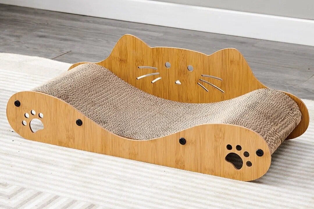 Когтеточку выбирайте простой и элегантной формы. Сегодня можно найти вариант, объединяющий в себе сразу несколько функций: непосредственно стачивание когтей и место для игр и отдыха.
