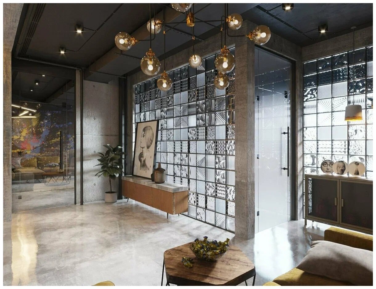 В последнее время актуальными вновь становится стеклоблоки. Да, их используют не только в поликлиниках: из них делают конструкции, ниши и даже целые стены, которые добавляют интерьеру аутентичности и фактуры.