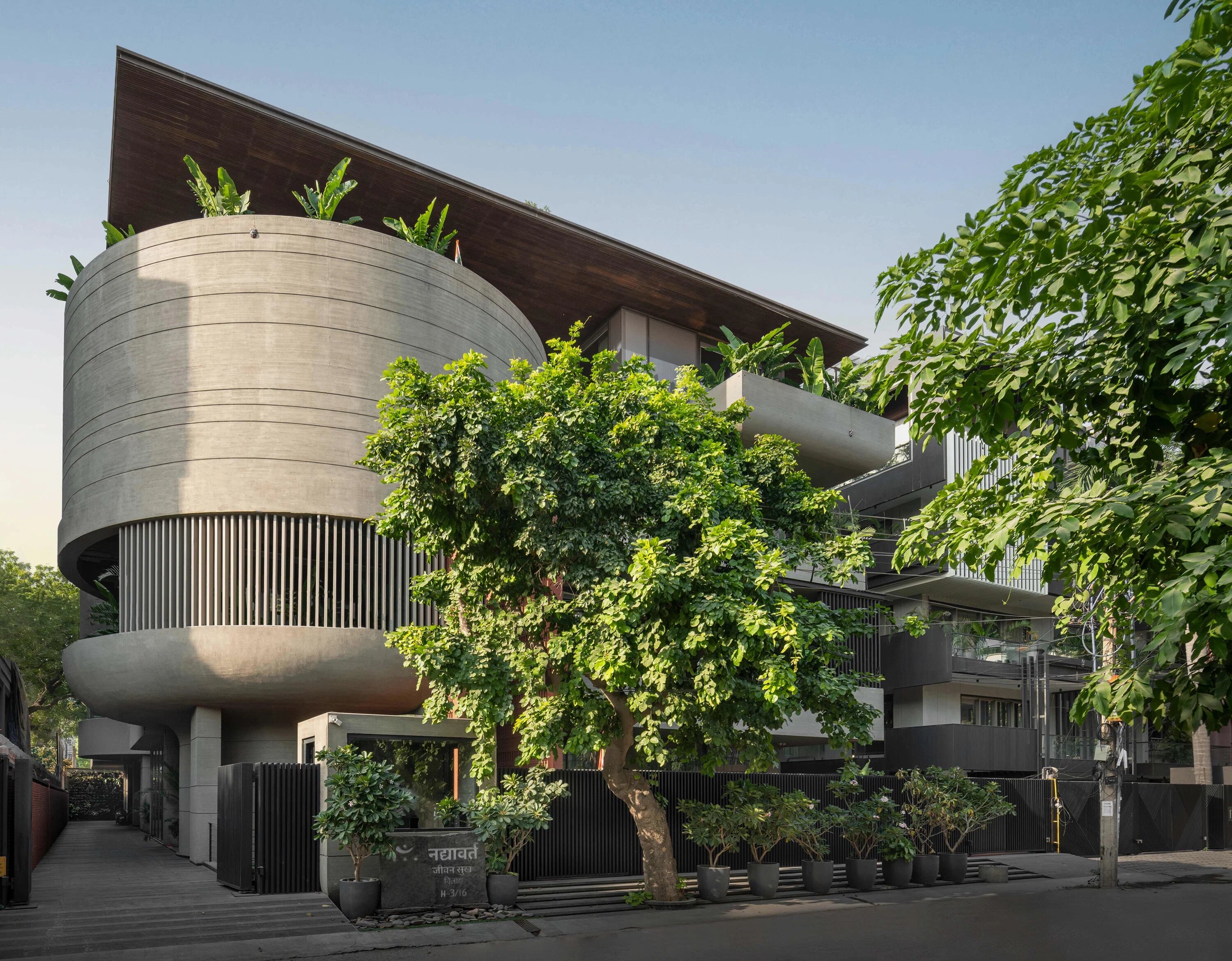 Экологичные материалы, выверенные геометрические формы и брутализм: индийское архитектурное бюро Atrey and Associates возвело резиденцию в Дели, где необычная архитектура сочетается с комфортным содержанием.
