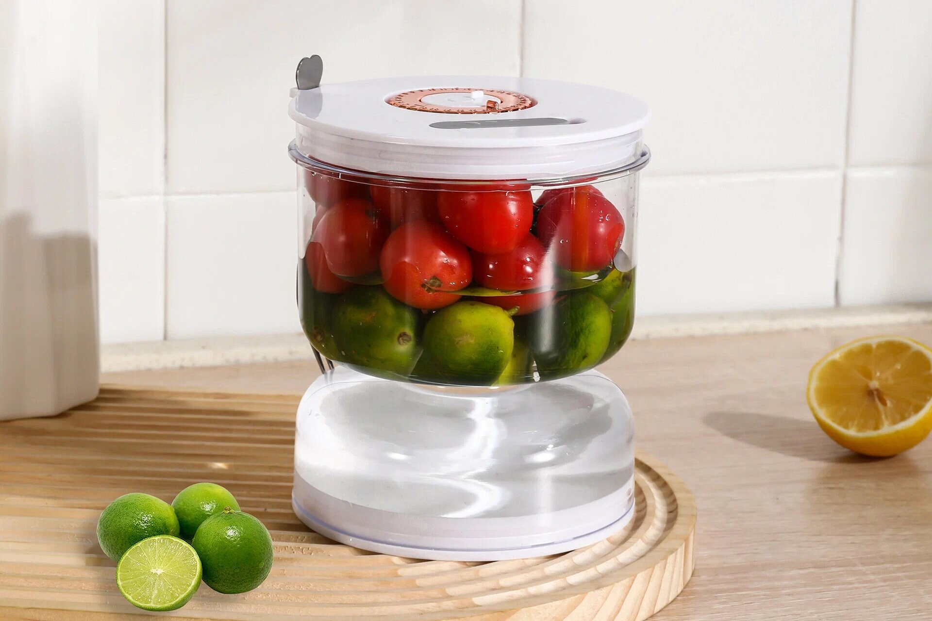 Резервуар ставится на нижнюю полку холодильника, в так называемой зоне свежести, подальше от фруктов, выделяющих этилен: яблок, бананов, которые могут ускорить порчу. Воду в нём необходимо менять раз в 2–3 дня.