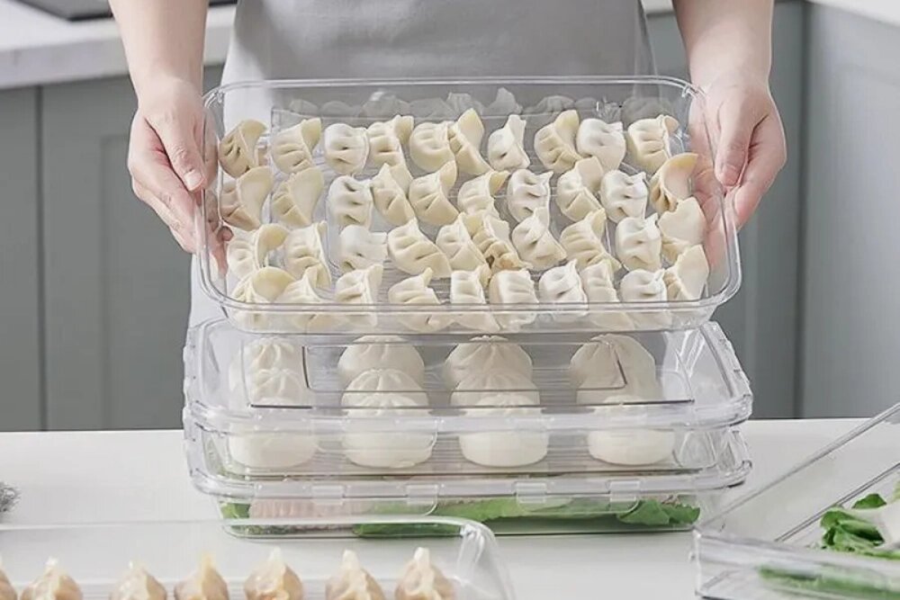 Морозильной камеры даже в самом просторном холодильнике может не хватать, если в семье принято делать заготовки: лепить впрок пельмени, вареники и котлеты, запасать на зиму овощи и фрукты. Оптимизировать хранение помогут многоуровневые контейнеры с несколькими ярусами, которые скрепляются защёлками.