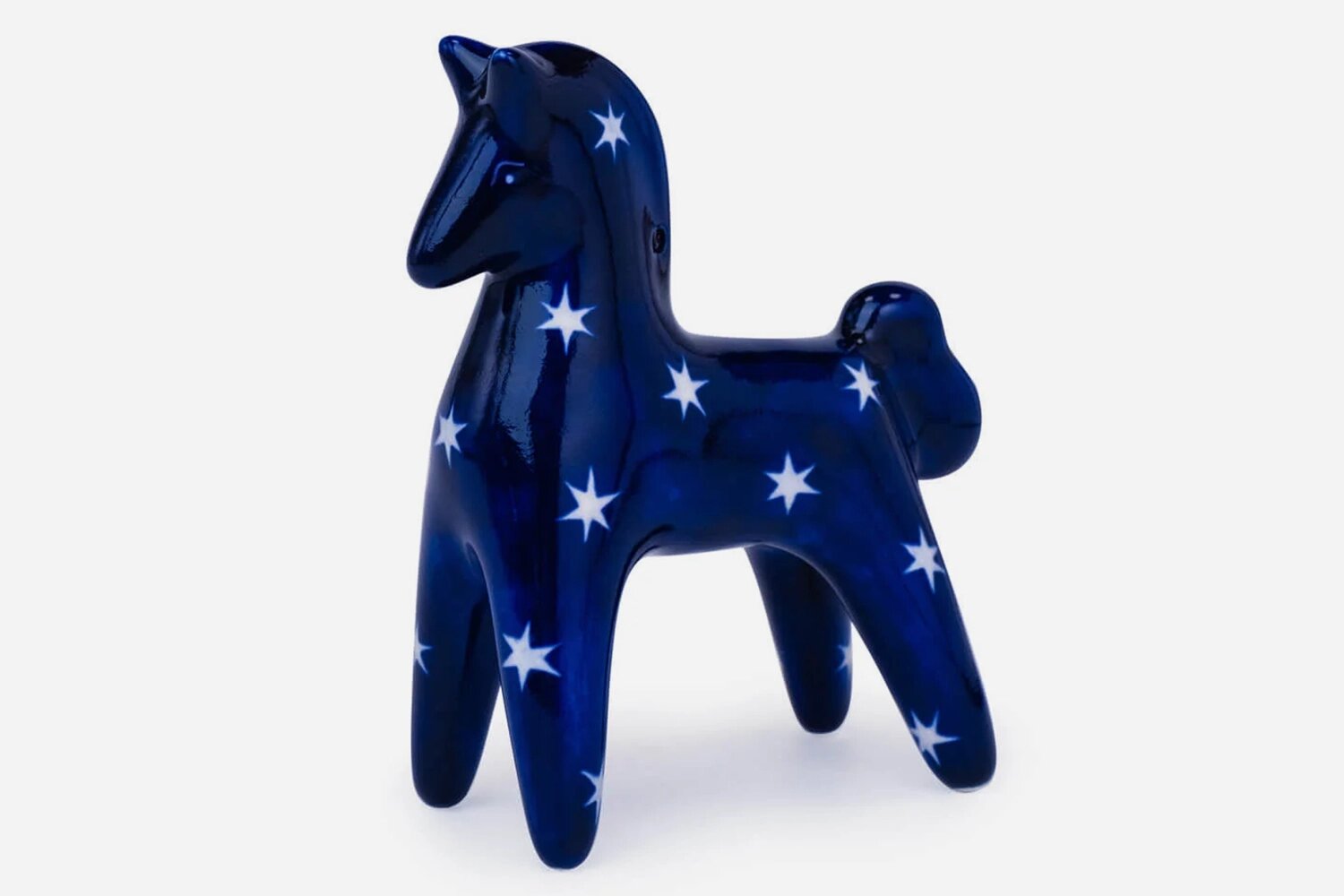 Все вещи в «Лукоморье» создаются вручную — от лепки или формовки до росписи и финального декора. В новогодних сериях — игрушки-лошадки, декор с лесной и сказочной эстетикой, выполнены с любовью и вниманием к деталям. Каждая ёлочная игрушка словно страница из русской сказки, ожившая на ёлке. И хотя пока вариантов для покупки немного, коллекция будет пополняться в будущем.