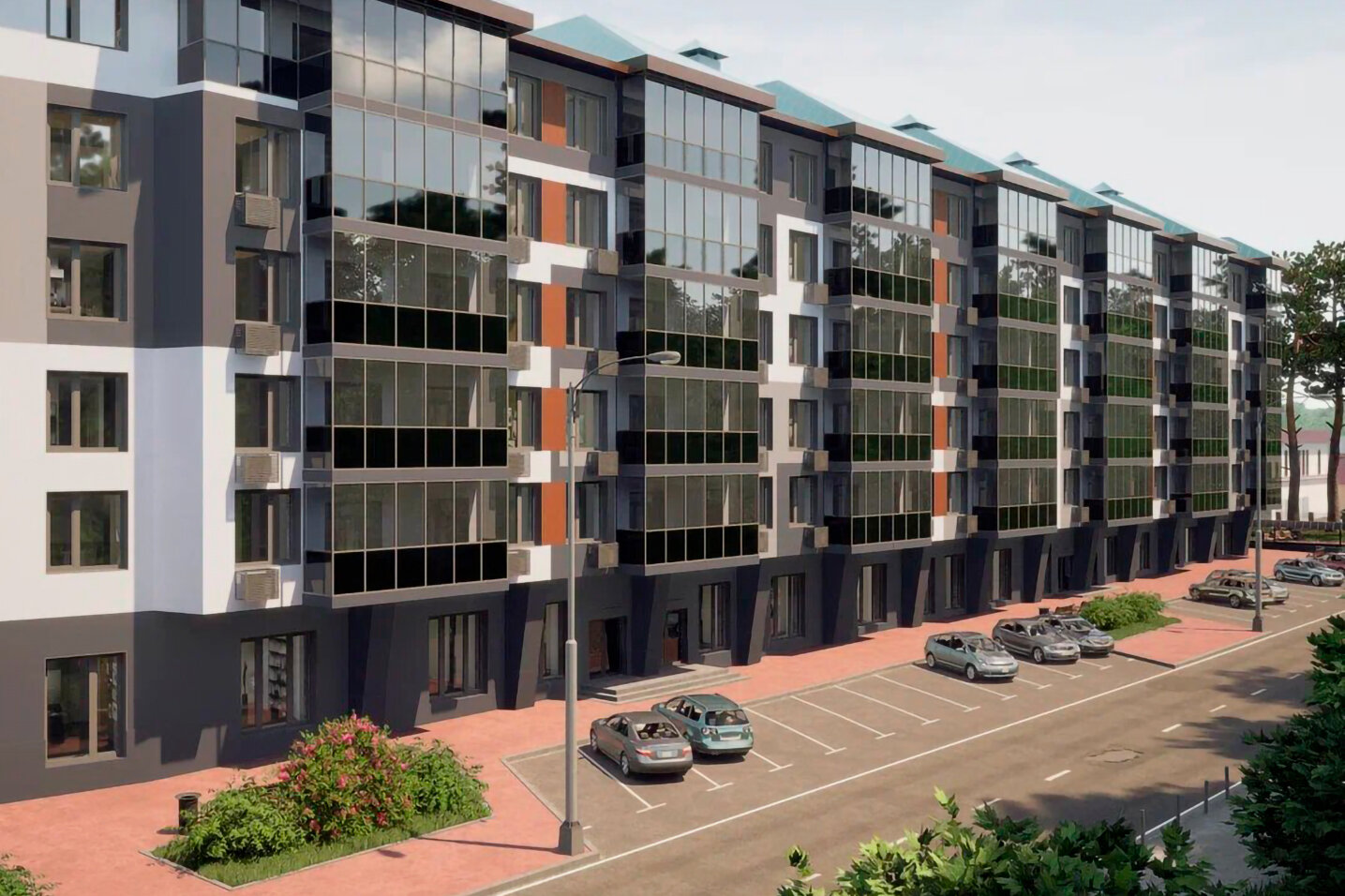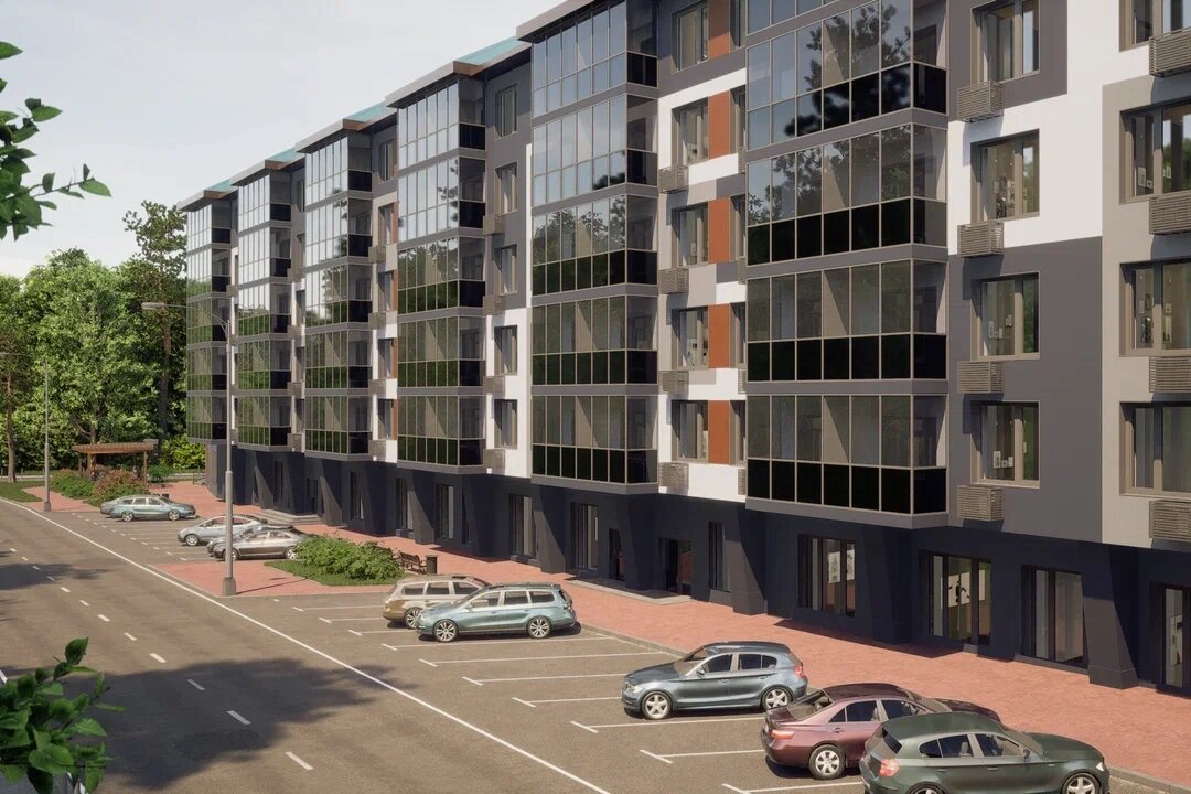 Комплекс спроектирован таким образом, чтобы из большинства апартаментов открывались привлекательные виды на близлежащий парк или двор с озеленением.
