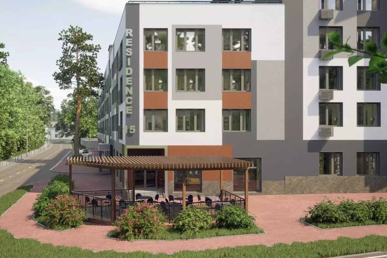 В трёх малоэтажных корпусах Residence 15 размещаются апартаменты различных планировок площадью от 24 до 115 кв. м, от студий до 3-комнатных. В состав комплекса войдут фитнес-клуб с бассейном, спа-центр, эксплуатируемая кровля с террасами, подземный паркинг.