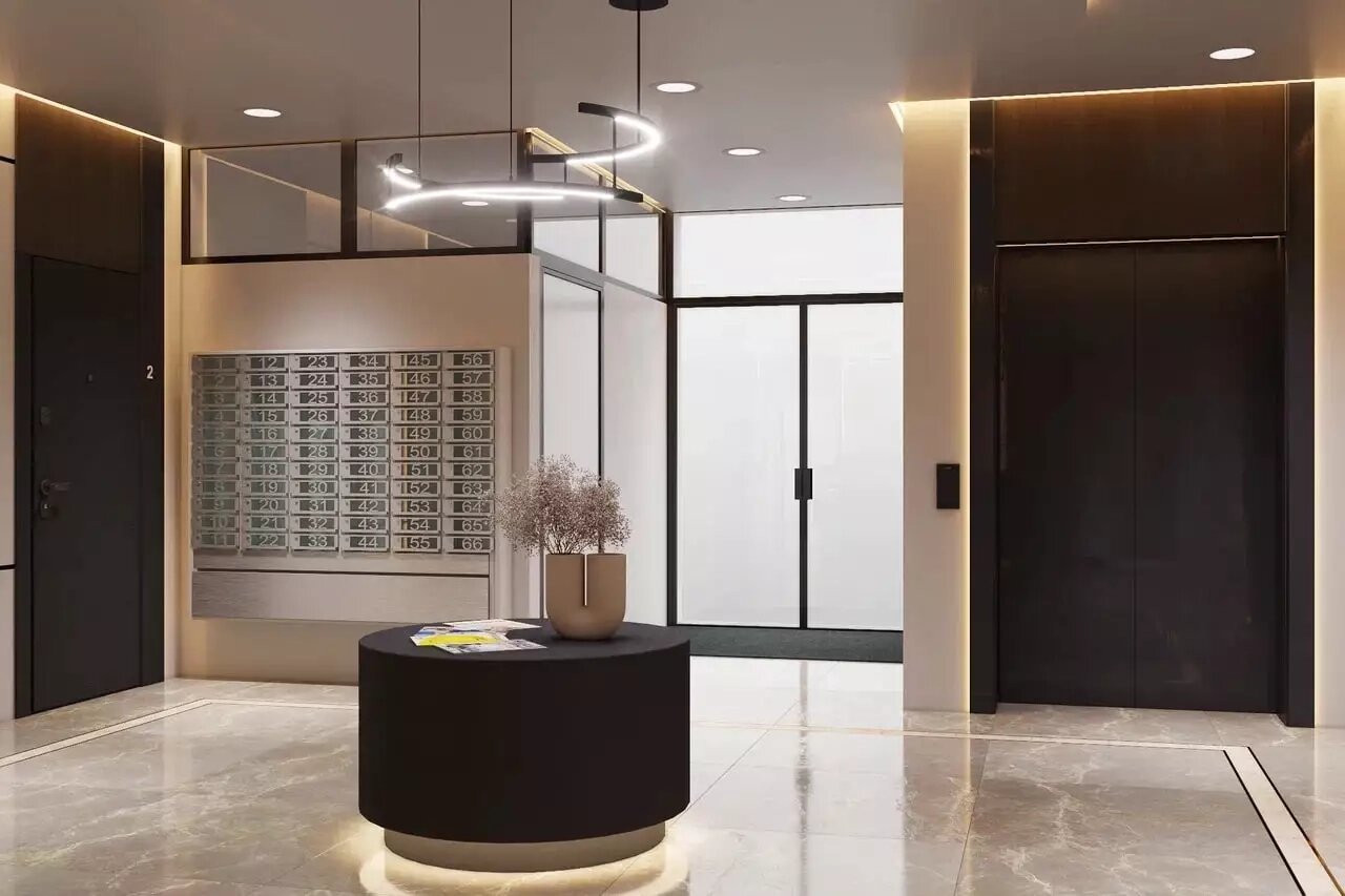 Входные группы. Входы в подъезды оформят в современном стиле. В холлах будут расположены зоны ожидания, детские игровые зоны, а также места для мытья лап домашних питомцев.