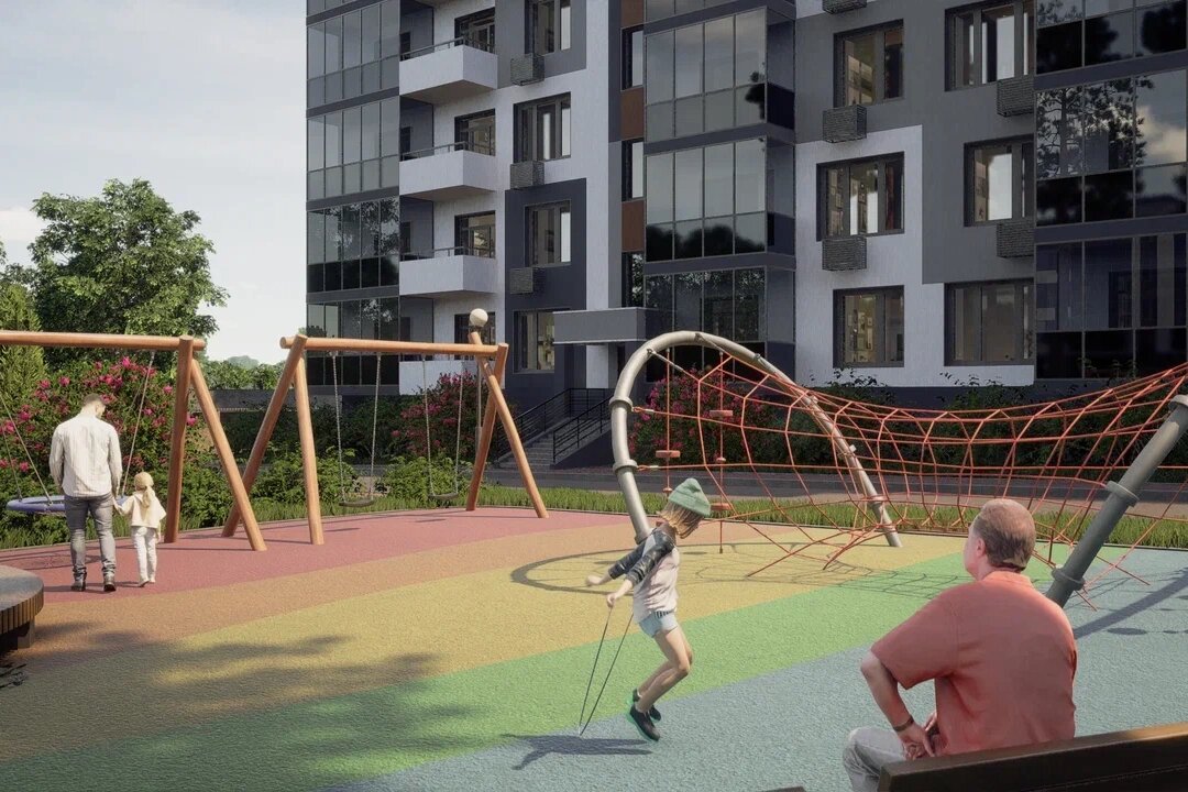 Для детей. Во дворе апарт-комплекса будет обустроена детская площадка, а в лобби — уютные игровые зоны.