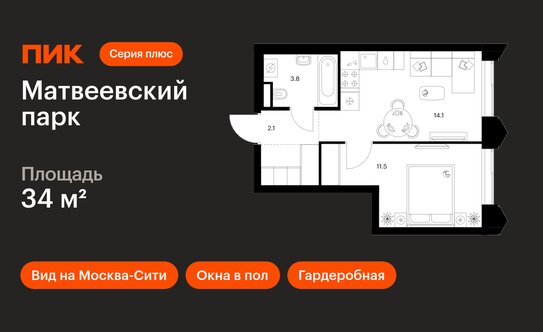 - 37,56 млн ₽Москва, ЗАО, район Очаково-Матвеевское, жилой комплекс Левел Мичуринский, к11Очаково 15 мин.