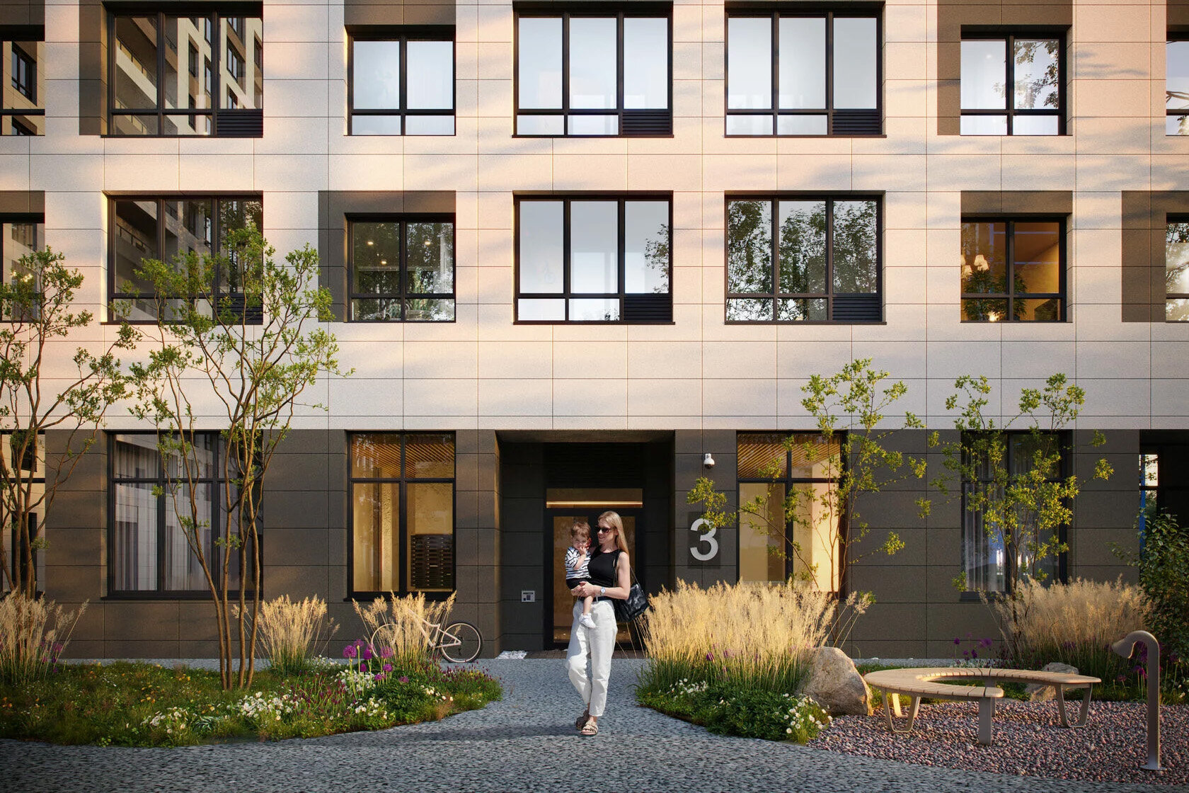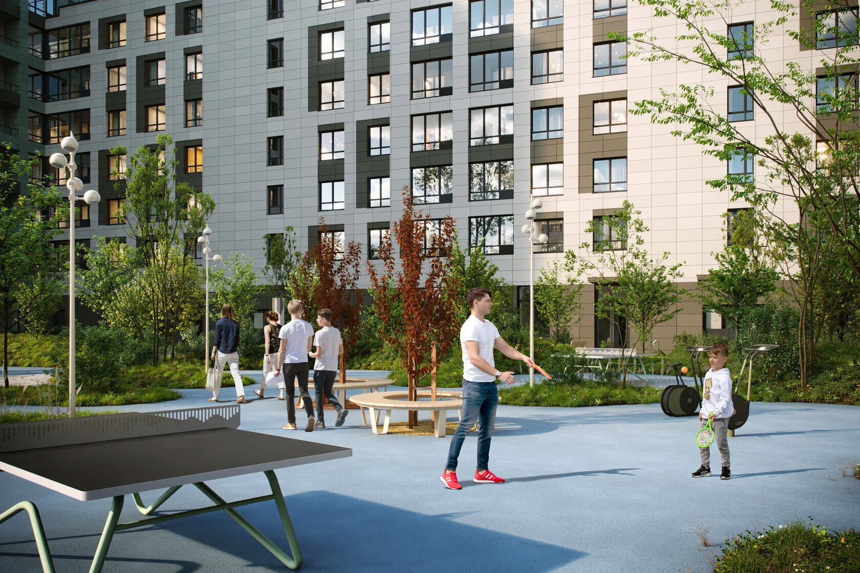Дворы без машин — безопасное пространство, где жители смогут отдохнуть. На территории ЖК возведут игровые площадки с мягким покрытием, а также обустроят воркаут с уличными тренажёрами и турниками. Проект озеленения дворов выполнила студия ландшафтного дизайна Megabudka. В каждой зоне высадят растения одного семейства. Площадки разделят островками зелени.