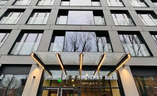 Архитектура входных групп перекликается с обликом фасадов: в холлах установлены панорамные окна, а в отделке использованы каменные элементы, которые по оттенкам сочетаются с внешними стенами здания.