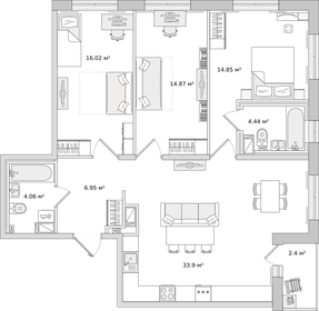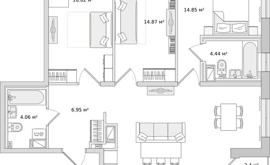 У каждой квартиры на этаже — индивидуальная планировка. Встречаются варианты, где есть ванные комнаты с окном или мастер-спальни с выходом в гардероб или санузел. Также можно выбрать квартиру с застеклённым балконом или лоджией и планировки с открытыми террасами.