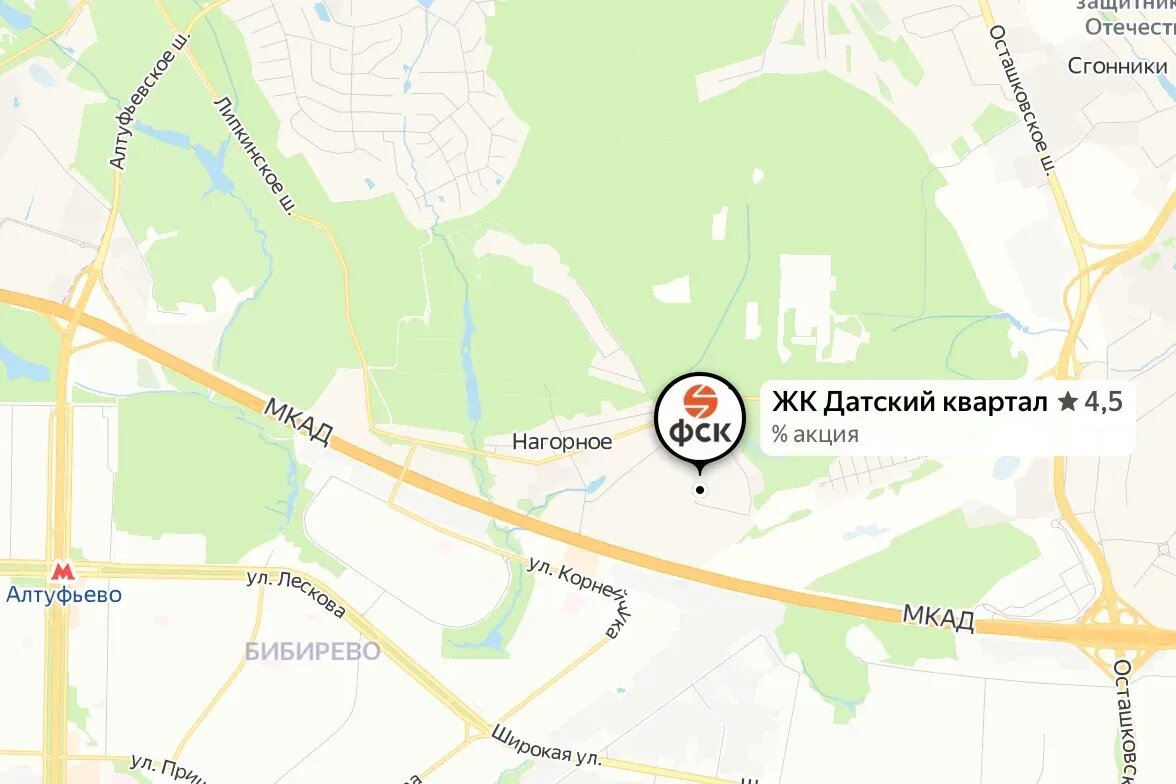 ЖК «Датский квартал» (Мытищи, посёлок Нагорное) | 6,3 | ГК ФСК | 25,4–105,3 | IV квартал 2023, есть сданные | До МКАД 400 м, до станции метро «Медведково» 2,7 км |