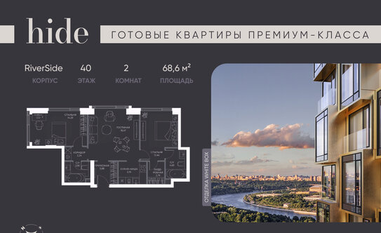 Небоскрёбы в ЖК Hide спроектировали специалисты из лучших в стране архитектурных бюро. Безусловные преимущества ЖК — панорамные окна, высокие потолки, закрытая благоустроенная территория, обширная внутренняя инфраструктура, набережные и парки, быстрый выезд на ТТК.