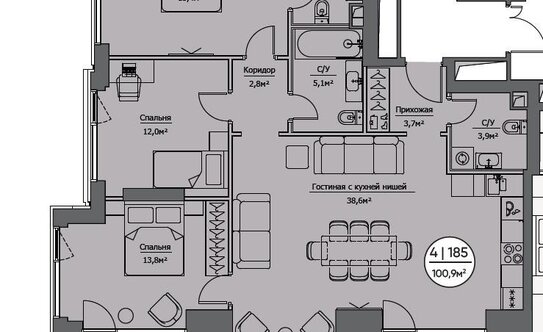 Количество комнат | Минимальная цена, млн ₽ (март 2023) |